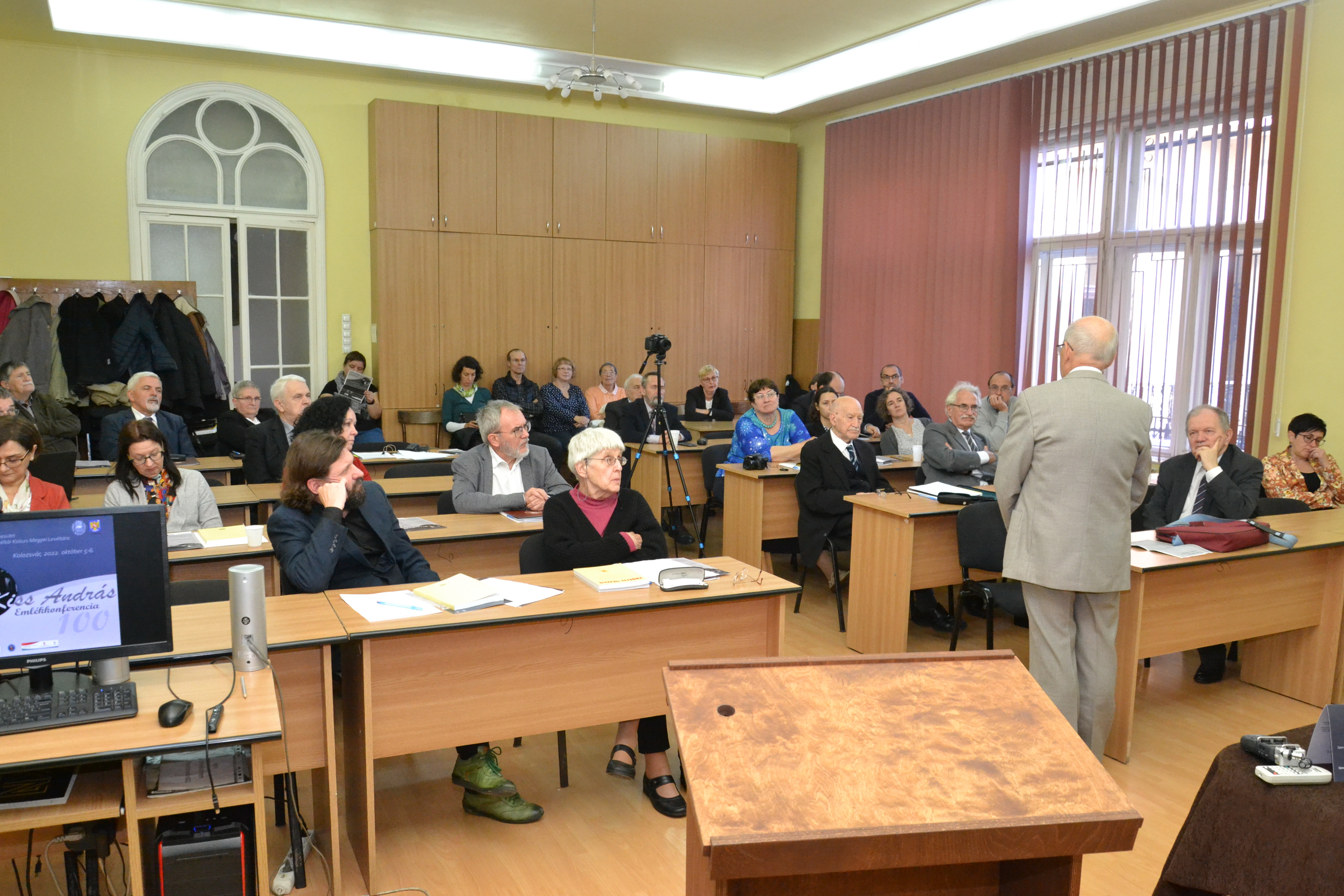 Az Erdélyi Múzeum-Egyesület és a Román Nemzeti Levéltár Kolozs megyei Levéltára, születésének 100. évfordulója alkalmából, 2022. október 5–6-án, tudományos konferencia keretében emlékezett meg Kiss András (1922–2013) romániai magyar levéltáros, történetkutató és jogtörténész személyéről és munkásságáról. A rendezvény az ünnepelt házsongárdi temetőben lévő sírjánál vette kezdetét, ahol az emlékezés virágainak az elhelyezése mellett Sipos Gábor, az EME korábbi elnöke, illetve Ioan Drăgan, a Román Nemzeti Levéltár volt főigazgatója méltatták az ünnepelt személyét és szakmai érdemeit. A rendezvény az Erdélyi Múzeum-Egyesület központi épületének előadótermében folytatódott tudományos konferencia formájában, ahol az előadók Kiss András pályatársai és tanítványai közül kerültek ki. Az előadások első tömbje az ünnepelt személyiségére, a Román Nemzeti Levéltárban eltöltött három és fél évtizedes levéltárosi és iratmentő tevékenységére, az Erdélyi Múzeum-Egyesület 1990-es újraindulását követően az intézmény újjászervezésében vállalt szerepére, továbbá történetkutatói tevékenységének főbb irányvonalaira mutattak rá. A további előadások a Kiss András által folytatott erdélyi és kolozsvári jog-, intézmény-, város-, társadalom- és mentalitástörténeti kutatások területén mutattak be olyan új eredményeket, melyek az ünnepelt kutatásait folytatják, egészítik és teljesítik ki. Kolozsvár története kapcsán szó esett a kolozsvári adózás történetéről, az adókönyveknek a városi birtokos társadalom és a település reprezentatív lakóépületei történetének a felderítésében betöltött szerepéről, a harangozási számadásokról, illetve a városi jogügyigazgatók kora újkori tevékenységéről. Három előadás a népi hiedelemvilág, a boszorkányság és a jog összefonódó világába vezérelte a hallgatóságot. Egy aranyosgyéresi váltott gyermek 19. századi eleji történetébe, a nánási boszorkányperek, valamint a tetemrehívás szokásának vizsgálatába nyújtottak betekintést. Mindhárom téma az ünnepelt kedvelt kutatási területe volt, akárcsak a második nap előadásainak azon tömbje, amely az erdélyi fejedelemségkori jog történetéből a magyar jogi szaknyelv 16–17. századi formálódását, egy 16. század végi jogszolgáltatási segédkönyv bemutatását, illetve Kolozs vármegye 17. századi eleji birtokos nemes prokurátorainak a tevékenységét részletezte. Szó esett még Bocskai István levelezéséről és levéltáráról, az Erdélyben is birtokos Csáky család jeles nőtagjairól, (Aranyos)gyéres 18. század végi–19. század eleji protokollumáról, illetve a történész és a történetírás helyzetéről a 20. század eleji Kolozsváron.
