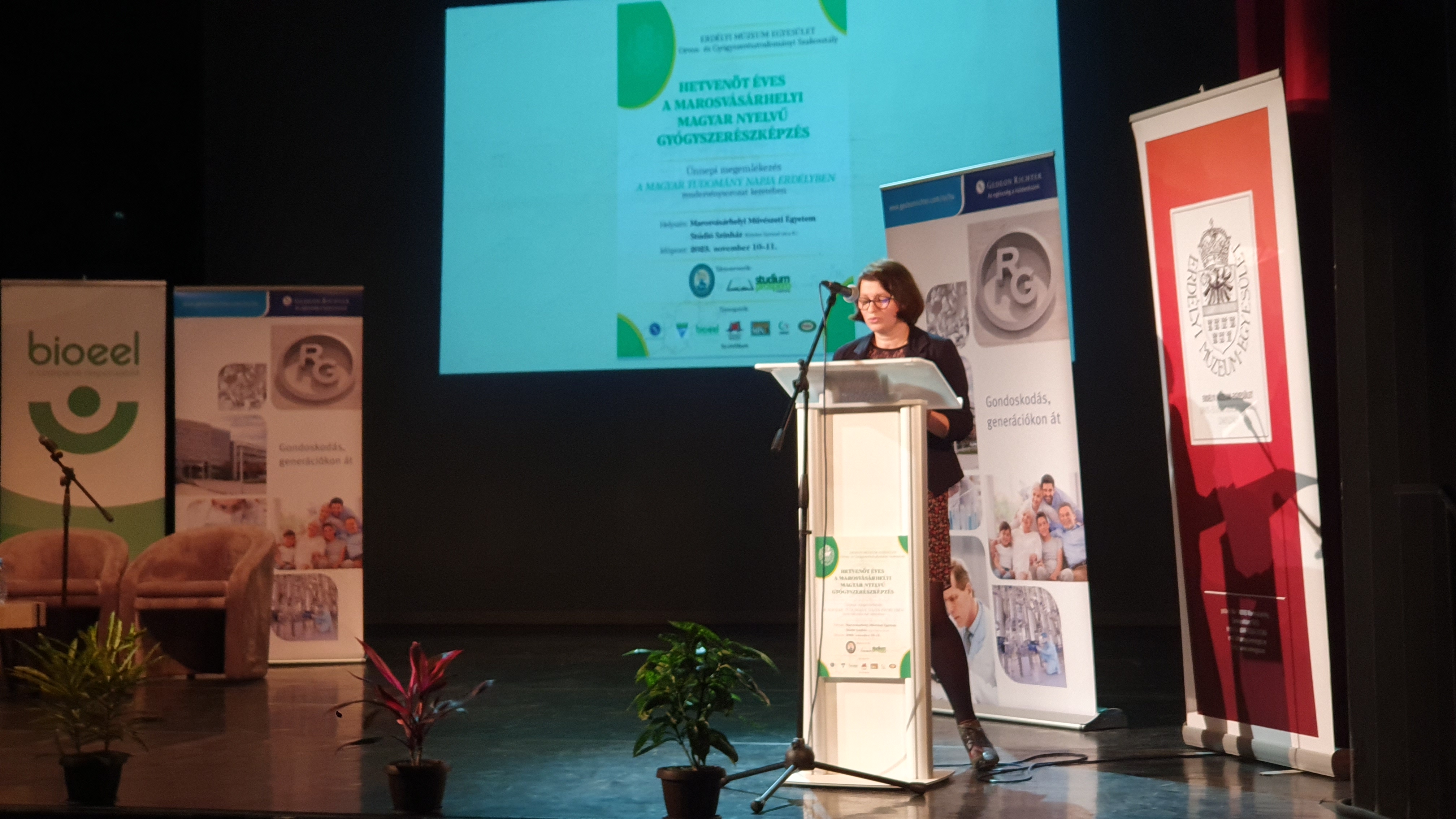 | [node:field_eventreport:value] | <p>Emlékülést szervezett a a Marosvásárhelyi Gyógyszerészeti Kar fennállásának 75. évfordulója alkalmából az Erdélyi Múzeum-Egyesület Orvos- és Gyógyszerésztudományi Szakosztálya a Magyar Tudomány Napja Erdélyben rendezvénysorozat keretében november 10-11-én. Az emlékülésen könyvbemutatóra is sor került a 75 éves gyógyszerészképzésről a Marosvásárhelyi Művészeti Egyetem Stúdió Színházában. Emellett kulturális, zenés, táncos program és a gyógyszerészi pályáról szóló kerekasztal-beszélgetés is színesítette a programot. Az emlékülésen köszöntőbeszédet mondott Bitay Enikő, az EME elnöke. A rendezvény második napján a résztvevők a Gyógyszerészeti Kar épületét látogatták meg.</p> <p><a href="https://www.e-nepujsag.ro/articles/megorizni-es-tovabbadni-az-oeroekseget?fbclid=IwAR1rgfdYyF7xWHjBh9HrO9p48bbsWlEkpJGqcVTmRtYpVhdb0w8s-ER-TPE">https://www.e-nepujsag.ro/articles/megorizni-es-tovabbadni-az-oeroekseget</a></p> <p><a href="https://www.vasarhely.ma/hazon-kivul-unnepeltek-a-75-eves-magyar-nyelvu-gyogyszereszkepzest/">https://www.vasarhely.ma/hazon-kivul-unnepeltek-a-75-eves-magyar-nyelvu-gyogyszereszkepzest/</a></p> <p>(Fotó: Népújság)</p> |