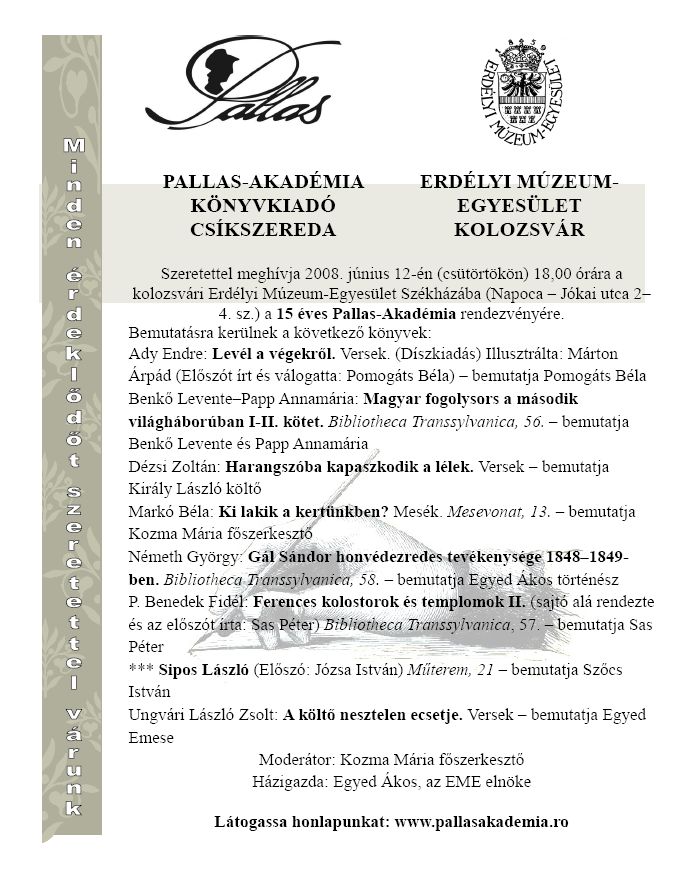 és az előszót írta: Sas Péter) Bibliotheca Transsylvanica, 57. – bemutatja Sas Péter