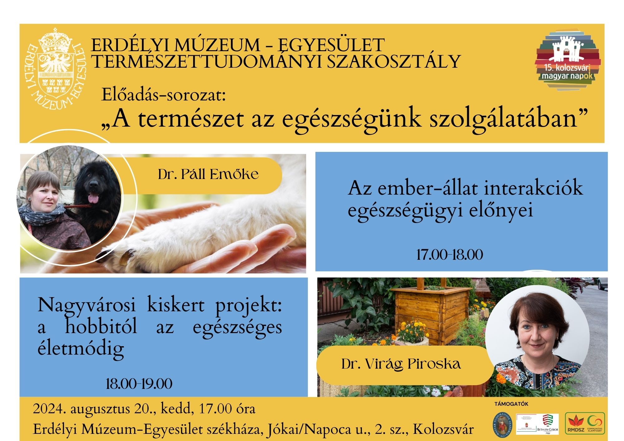 Az EME Természettudományi Szakosztálya a 15. Kolozsvári Magyar Napok alakamával előadássorozatot szervez A természet az egészségünk szolgálatában címmel, augusztus 20-án 17 órától, az EME székházában.