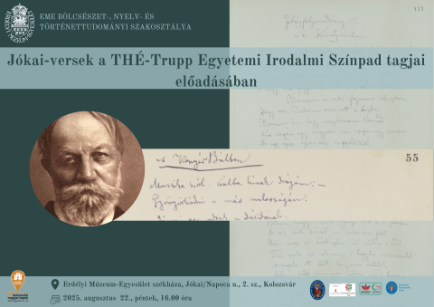 A rendezvény középpontjában Jókai Mór kevésbé ismert költői életműve áll. A 200 éve született író nemcsak regényeket és elbeszéléseket írt, hanem verseket és verses színpadi műveket is alkotott. E költői hagyatékból válogatott műveket adnak elő a THÉ-Trupp Egyetemi Irodalmi Színpad tagjai, új megvilágításba helyezve Jókai sokoldalú irodalmi munkásságát.