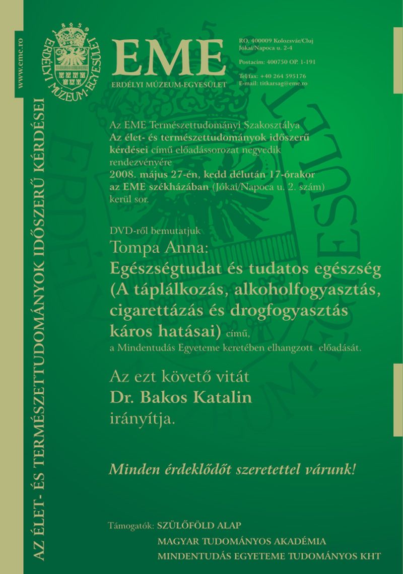 Tompa Anna : Egészségtudat és tudatos egészség (A táplálkozás, alkoholfogyasztás, cigarettázás és drogfogyasztás káros hatásai) című,