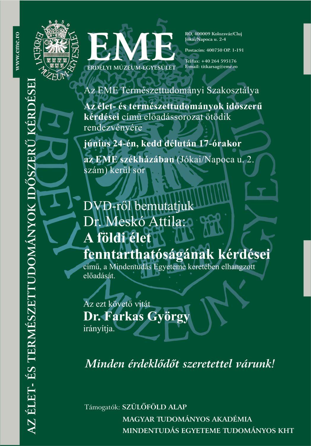 Meskó Attila: A földi élet fenntarthatóságának kérdései című, a Mindentudás Egyeteme keretében elhangzott előadását.