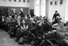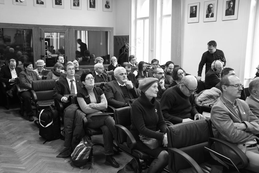 Az ebéd után következő harmadik szekció a gazdasági és hadi kiváltságokkal, illetve kötelezettségekkel kapcsolatos előadásokat ölelte fel. Elsőként Draskócy István, az Eötvös Loránd Tudományegyetem emeritus professzora ismertette az erdélyi szászok különféle csoportjai által a 13–14. században a királynak fizetett adókat, jelentős hangsúlyt fektetve az egyes adófajták jogcímének tisztázására, illetve a különféle márkasúlyok használatából eredő különbségekre. Weisz Boglárka, a BTK TTI középkori osztályának vezetője ugyan betegség miatt kénytelen volt távol maradni, írásban elküldött előadását azonban Gálfi Emőke (EME JZSKI) ismertette a jelenlevőkkel. Ebben a szászok vámmentességére és vásártartási jogára vonatkozó előírásokról hallhattunk, érvényességi körük és formáik részletezésével alapos útmutatást nyerve azok értelmezéséhez. Liviu Cîmpeanu, az ICSUS kutatója az erdélyi rendek késő középkori együttműködési szerződéseinek szövegéből kiindulva mutatta be az erdélyi szászok katonai-honvédelmi feladatait és szerepét.