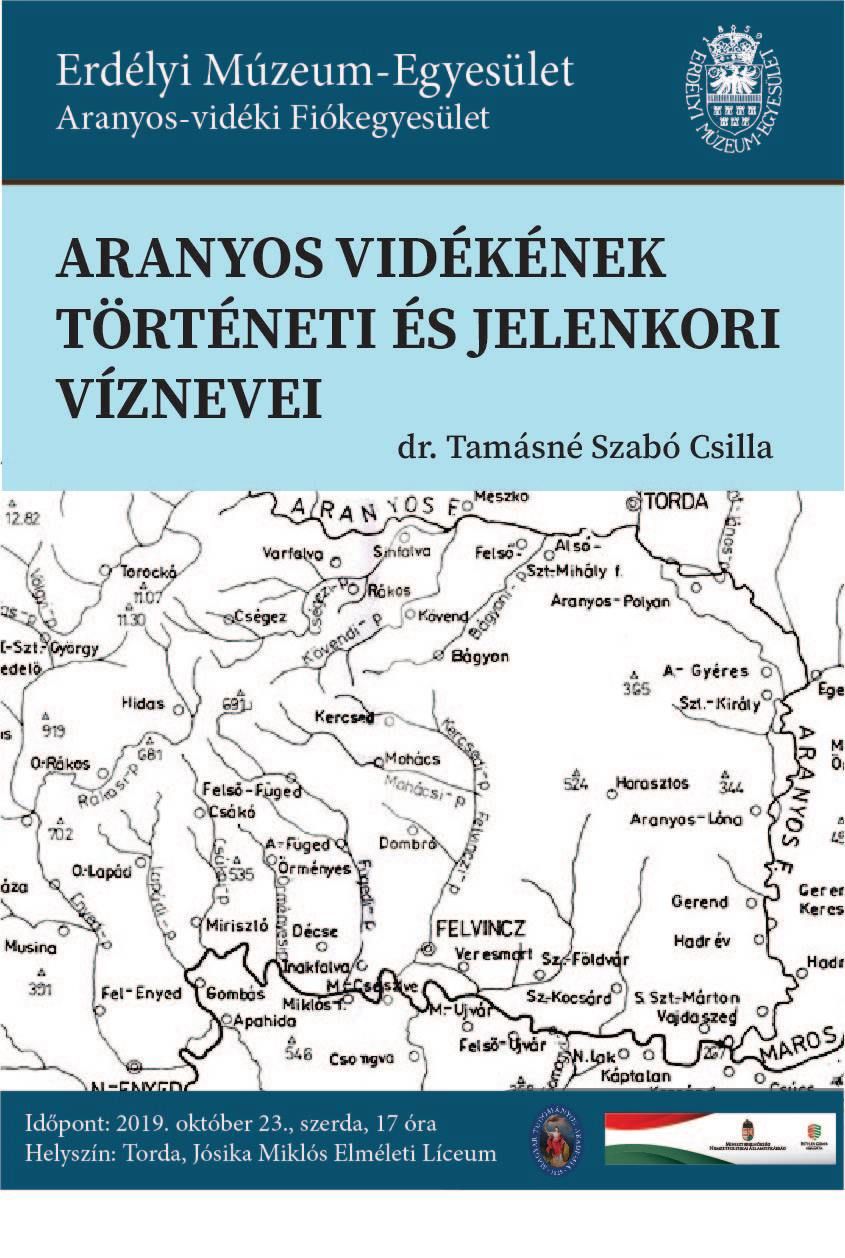 Az EME Aranyos-vidéki fiókegyesületének következő rendezvényén dr. Tamásné Szabó Csilla, az EME nyelvészkutatója tart előadást, Aranyos vidékének történeti és jelenkori víznevei címmel.