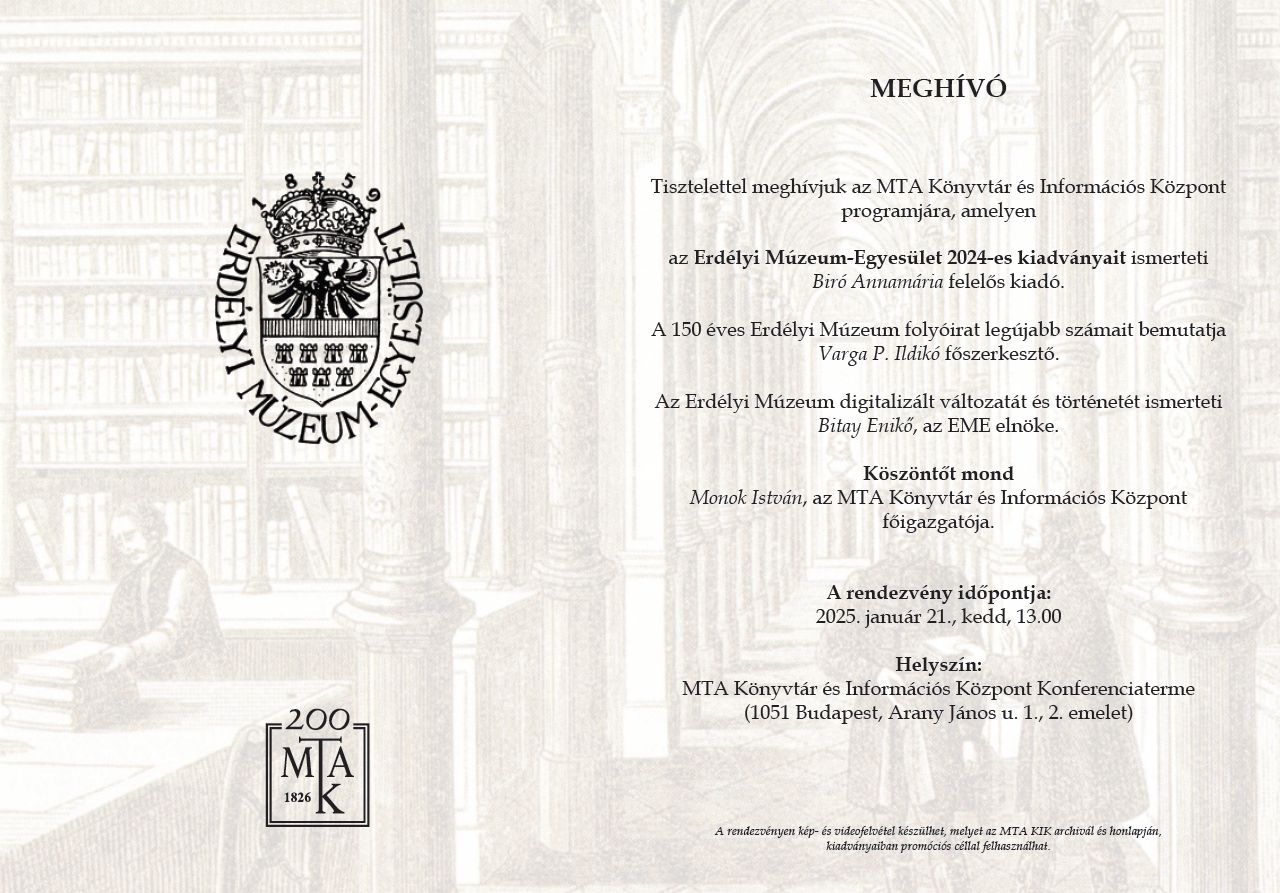 Erdélyi Múzeum-Egyesület és az MTA Határon Túli Magyarok Titkársága
