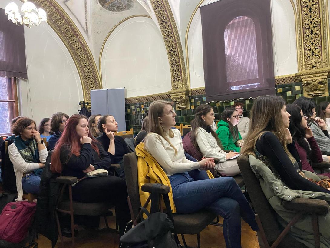 Bevezetőjében Egyed Emese röviden bemutatta és ajánlotta a jelenlévő diákok számára Török Zsuzsa munkáit, illetve mindenkit arra buzdított, hogy jegyzeteljen az előadás alatt. A szinte teljesen megtelt Popovici teremben, ahol elsőévesektől doktoranduszokig voltak érdeklődők, erre a hívószóra többen is elővették a papírt és az írószert.