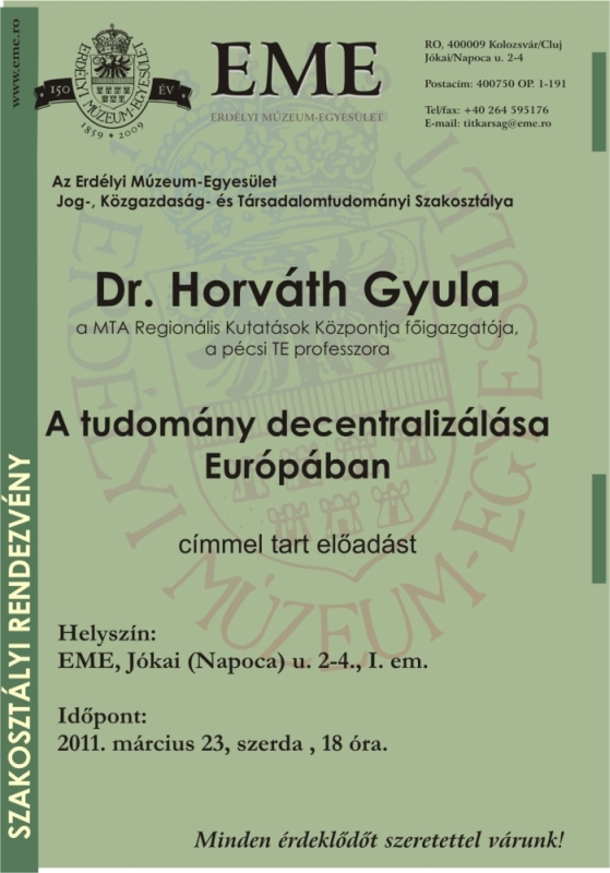 Az EME Jog-, Közgazdaság- és Társadalomtudományi Szakosztálya szervezésében