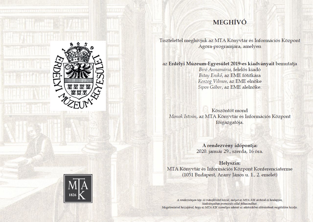 az Erdélyi Múzeum-Egyesület 2019-es kiadványait bemutatja: