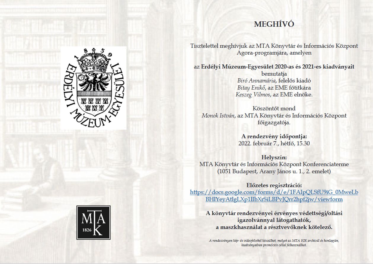 az Erdélyi Múzeum-Egyesület 2020-as és 2021-es kiadványait bemutatja: