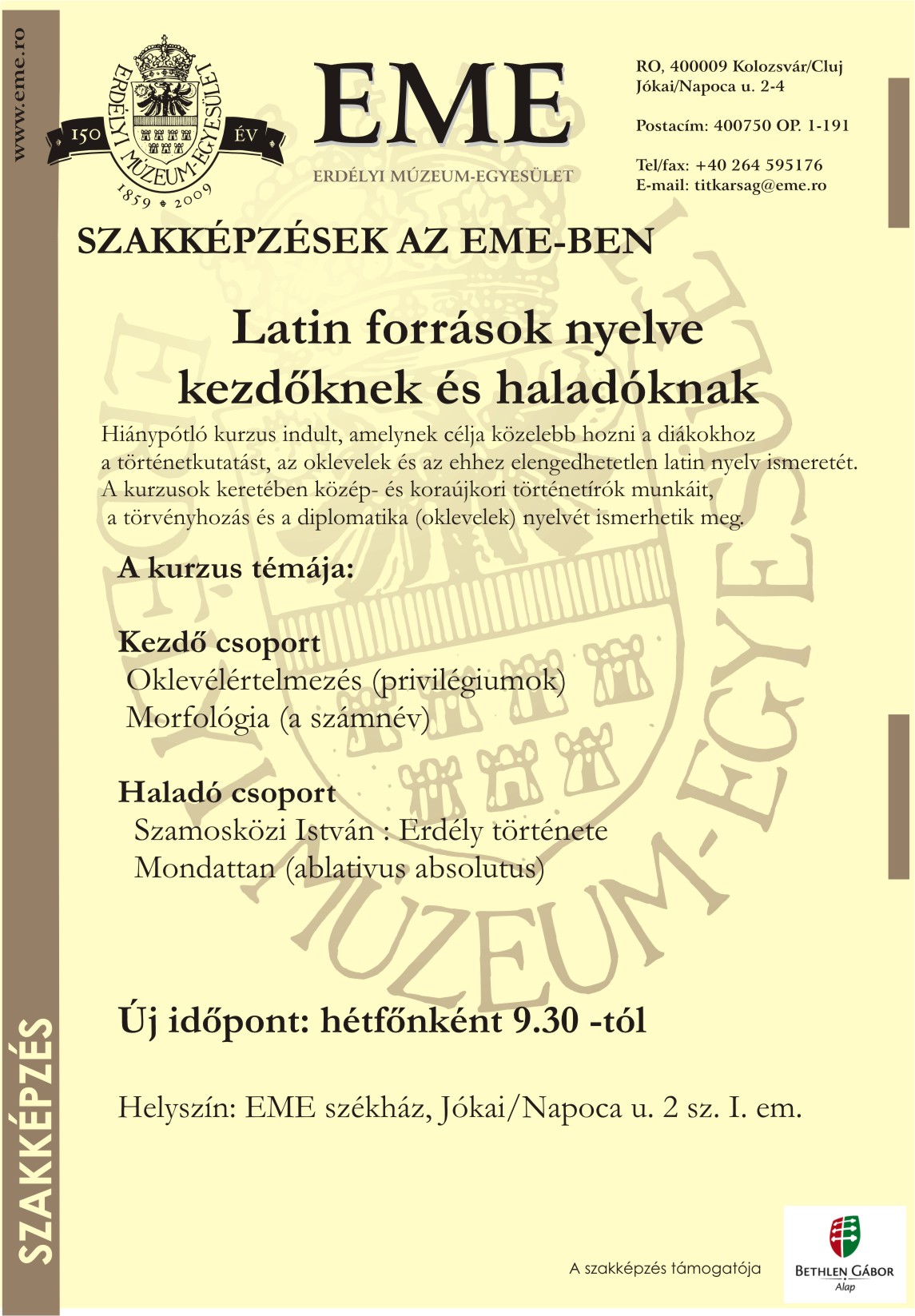 Helyszín: EME székház, Jókai/Napoca u. 2 sz. I. em.