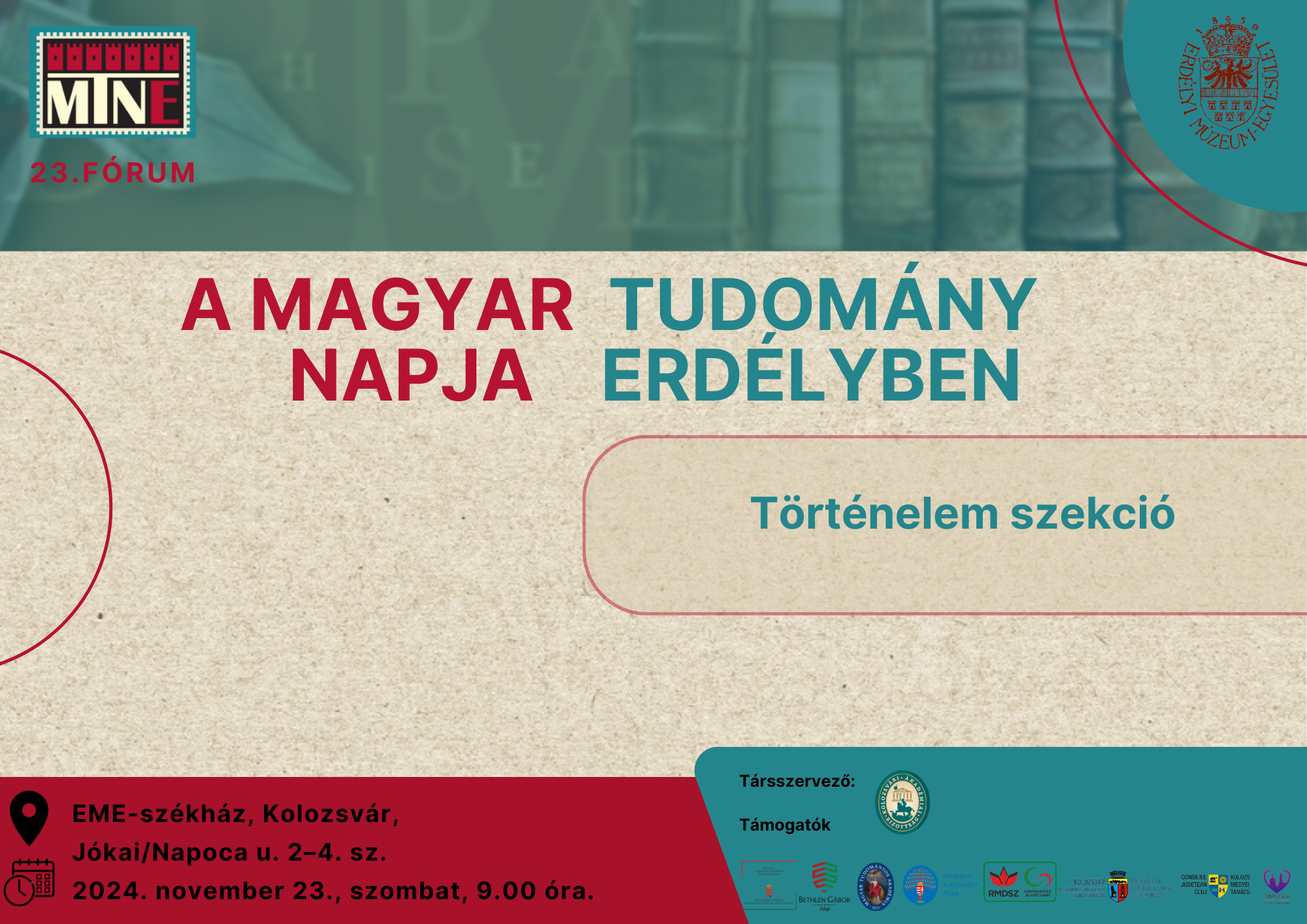 Helyszín: EME-székház, Kolozsvár, Jókai/Napoca u. 2–4. sz.