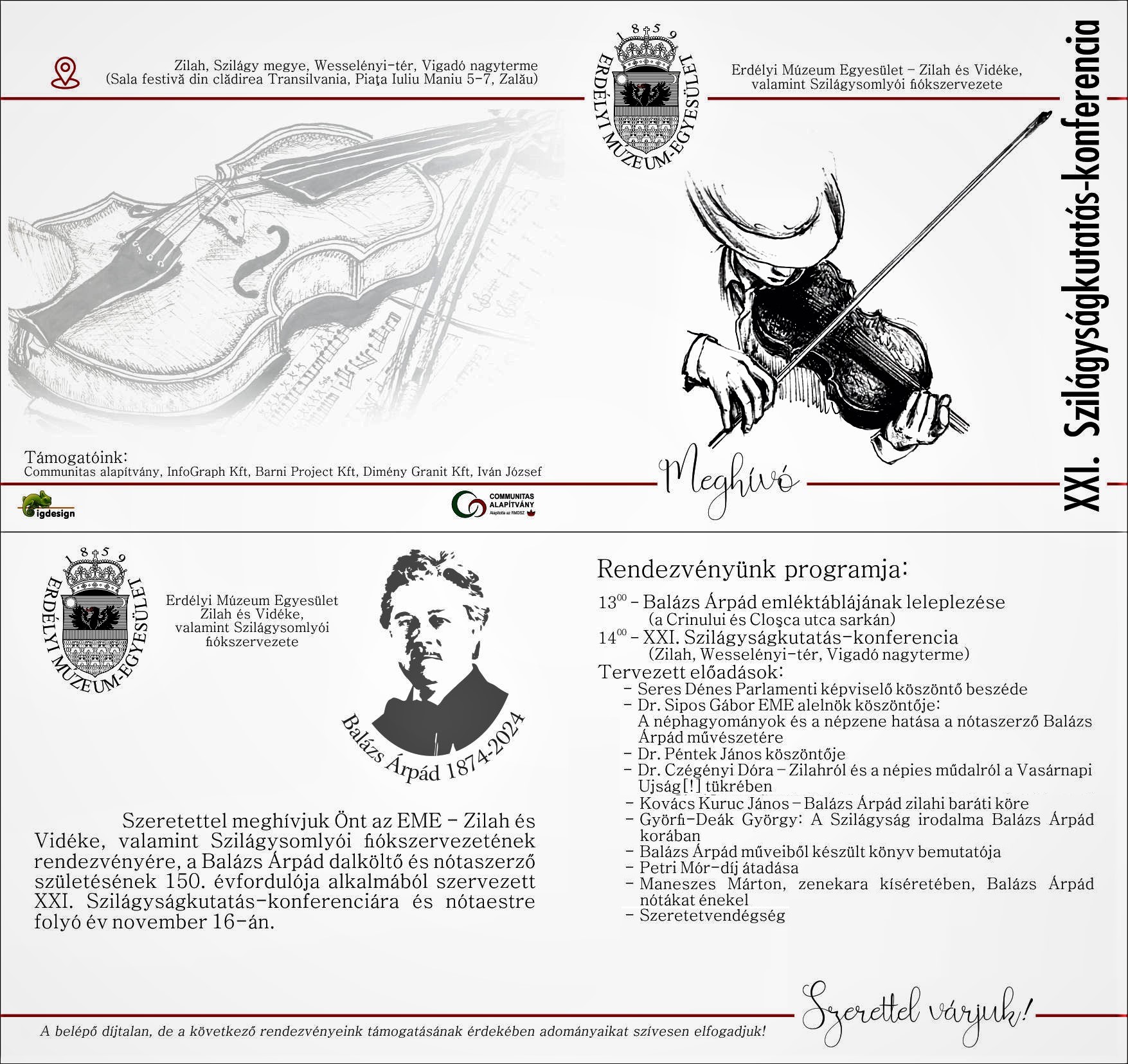 Az EME–Zilah és Vidéke, valamint a Szilágysomlyói fiókszervezete 2024. november 16-án tartotta XXI. Szilágyságkutatás-konferenciát. A rendezvényen Balázs Árpád, a neves dalköltő és nótaszerző születésének 150. évfordulójára emlékeztek.