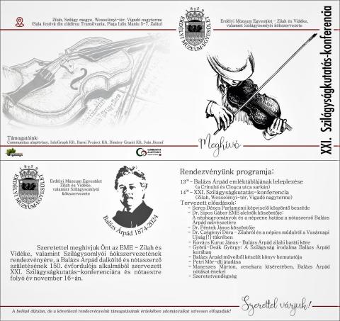 rendezvényére, a Balázs Arpád dalköltő és nótaszerző születésének 150. évfordulója alkalmából szervezett XXI. Szilágyságkutatás konferenciára és nótaestre folyó év november 16-án.
