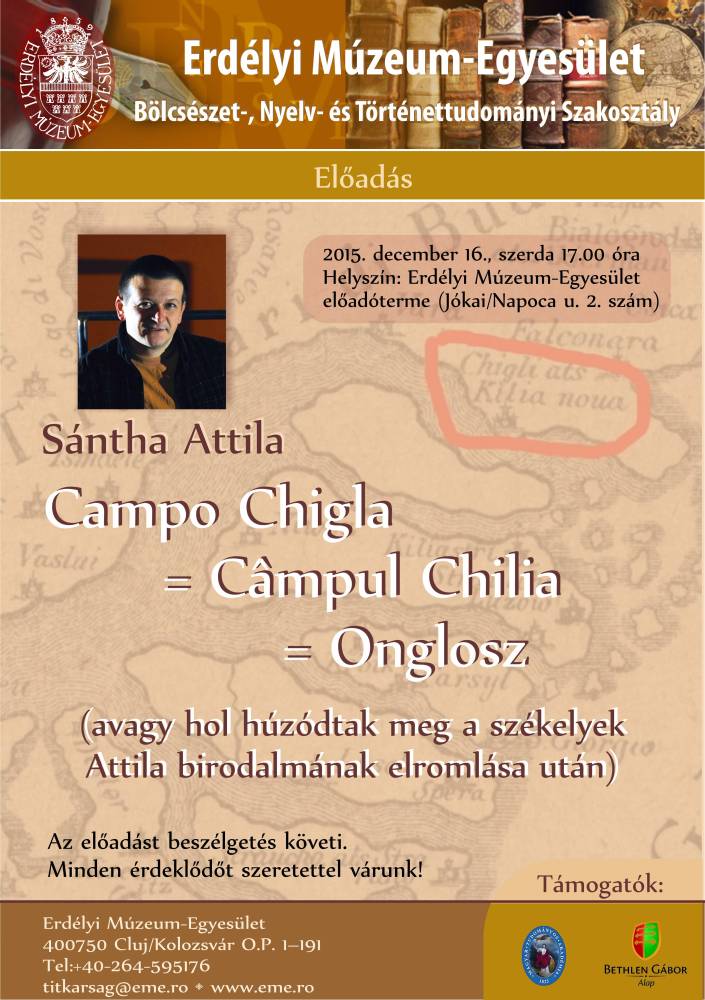 az Erdélyi Múzeum-Egyesület Bölcsészet-, Nyelv- és Történettudományi Szakosztályában (EME székház, Napoca/Jókai u. 2.sz.) 2015. december 16-án, szerdán 17 órától.