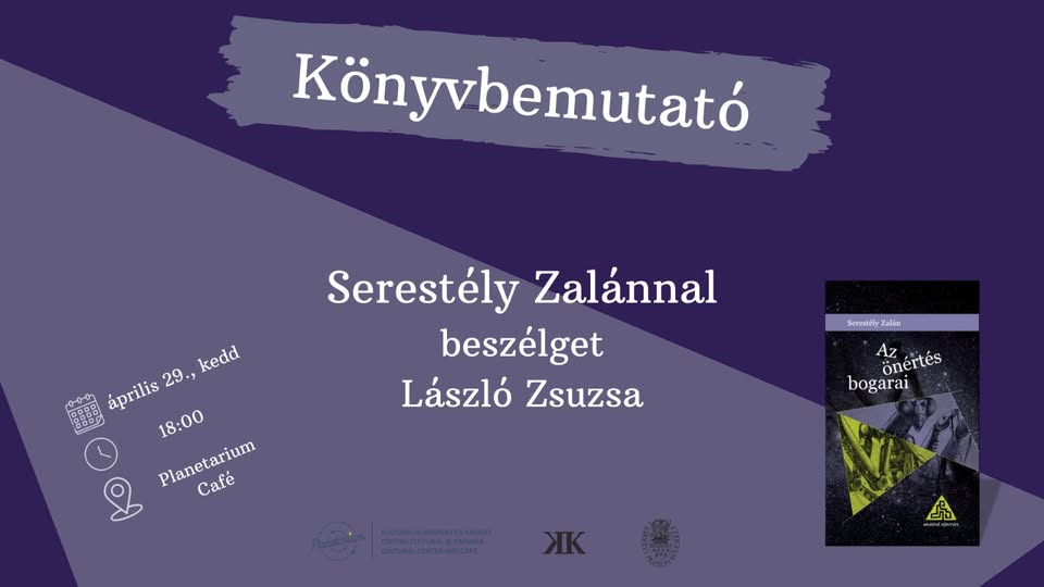 A BBTE BTK elsőéves mesterszakos hallgatói, a Komp-Press kiadó és az EME kiadója szerettel vár mindenkit Serestély Zalán Az önértés bogarai című tanulmánykötetének bemutatójára. A BBTE Magyar Irodalomtudományi Intézetének oktatójával László Zsuzsa beszélget.