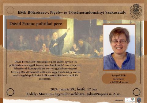 Szegedi Edit történész, a Babeş-Bolyai Tudományegyetem docense (Európai Tanulmányok Kar) ezekről a kérdésekről tart előadást január 29-én, hétfőn 17 órától az Erdélyi Múzeum-Egyesület Jókai/Napoca utca 2. szám alatti székháza előadótermében az egyesület I. Bölcsészet- Nyelv- és Történettudományi Szakosztálya szervezésében.