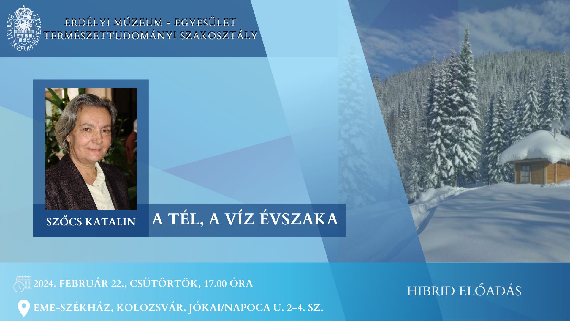 Havi előadó ülését tartja az EME Természettudományi Szakosztálya 2024. február 22-én, csütörtökön délután 17 órától az Erdélyi Múzeum-Egyesület székházában.