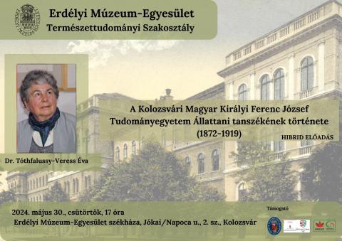 Dr. Tóthfalussy-Veress Éva tart előadást A Kolozsvári Magyar Királyi Ferenc József Tudományegyetem Állattani tanszékének történetéről (1872-1919).