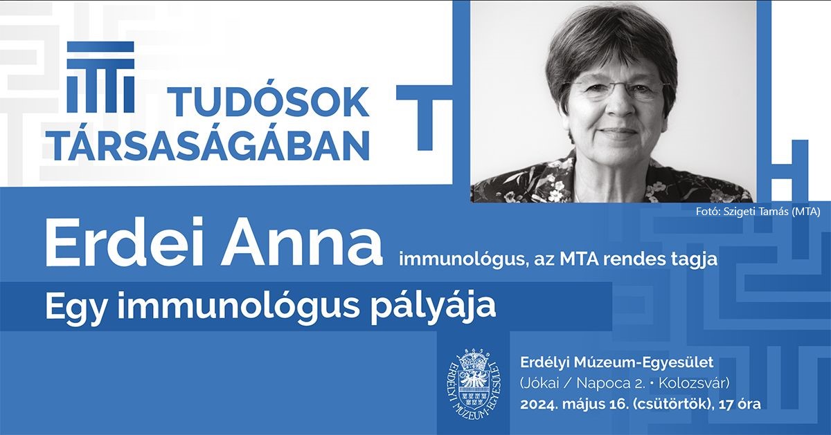 Bemutatásra kerül Erdei Anna életpályája, mint immunológus, emellett szó lesz az immunrendszer és az immunfolyamatok megértésének fontosságáról, saját kutatásairól, valamint az ún. immunerősítő szerekről is. Az előadásra 2024. május 16-án, 17 órától kerül sor az EME székházában.