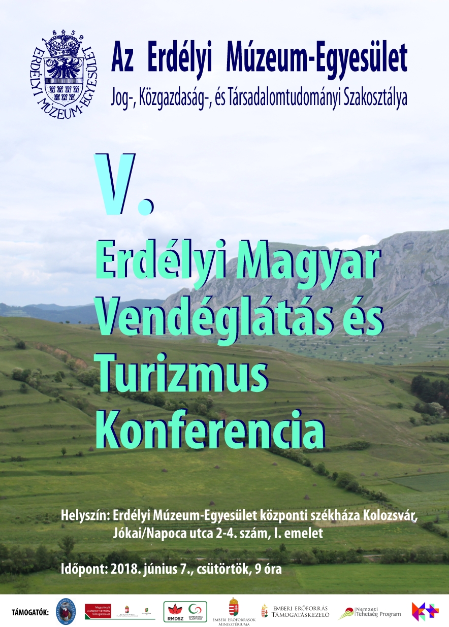 V. Erdélyi Magyar Vendéglátás és Turizmus Konferencia Kolozsvár, 2018. június 7. 2018. június 7-én immár ötödik alkalommal rendezte meg az EME Jog-, Közgazdaság- és Társadalomtudományi Szakosztálya az Erdélyi Magyar Vendéglátás és Turizmus Konferenciát a Babeș Bolyai Tudományegyetem partnerségével. A rendezvény fő célja az erdélyi magyar vendéglátás és idegenforgalmi szakemberek kutatási tapasztalatainak megosztása a turizmus és vendéglátás fejlesztése érdekében. A fórum keretet biztosított a hazai és anyaországi szakemberek találkozójára, tapasztalatcseréjére is. Erdély városaiban az utóbbi időben gyors ütemben növekedett az idegenforgalom, így időszerűvé vált, hogy a további fejlesztéseket szakmailag is segítsük. A turistaforgalom növekedésével megnőtt a munkaerő-kereslet, a fórum lehetőséget biztosított a szakmában tevékenykedő cégek bemutatására a munkaerő vonzása érdekében is. Romániai felsőoktatásban nincs szakmai képzés a vendéglátás szakterületen. Ezért időszerűnek tartottuk magyarországi egyetemi oktatók meghívását, hogy ízelítőt próbáljunk adni ezen szakterület kutatási eredményeiről, oktatási tapasztalatairól. Mindezek által a fórum különböző szakterületekről szólított meg jeles szakmai képviselőt, oktatót, kutatót egyaránt. A konferencia felkért előadói sokszínű témákat érintettek, hallhattunk a régiók turisztikai versenyképességéről, a turisztikai trendekről, a turizmuskommunikáció kihívásairól, a szállásfoglalások internetes lehetőségeiről, a nagyobb rendezvények turizmusra való hatásáról, a turisták zajkitettségéről, a geoparkok népszerűsítéséről, az okostelefonok hatékonyságáról a turizmusban, a bor- és vallásturizmus kapcsolatáról. A rendezvény a szolgáltatások területén kiemelkedő helyet biztosított a gyógyturizmusnak, mely hazánkban is potenciálisan/jelentősen fejleszthető. Két előadás keretében a Gyulán működő gyógyturizmus helyzetéről és fejlődési lehetőségeiről értesülhettünk. Bemutatásra került a tordai sóbánya átalakítása mint egy turisztikai látványosság sikertörténete. A kulturális turizmus hatékonyságának elemzése is a konferencia témái közé tartozott. Ismertetésre került a kulturális turizmus működésének bemutatása egy világörökségi helyszíné nyilvánított területen. A gasztronómia-szakértő előadásában, mely nagy érdeklődésnek örvendett, a székely konyha erősségeit és szakmai problémáit mutatta be.