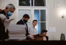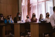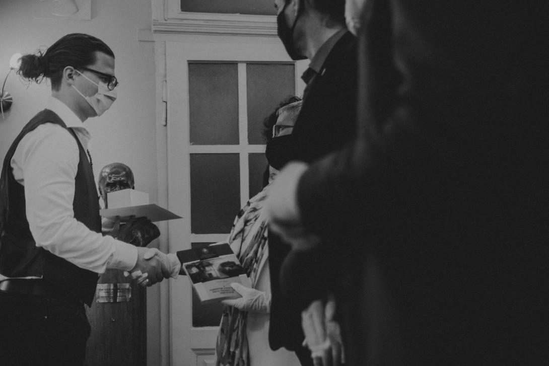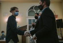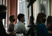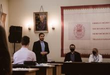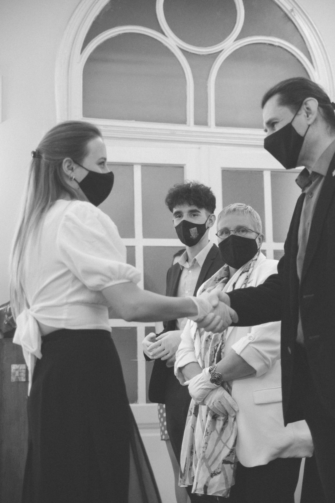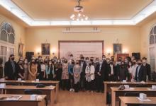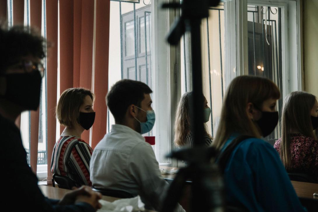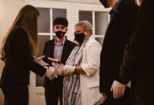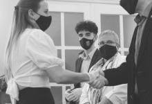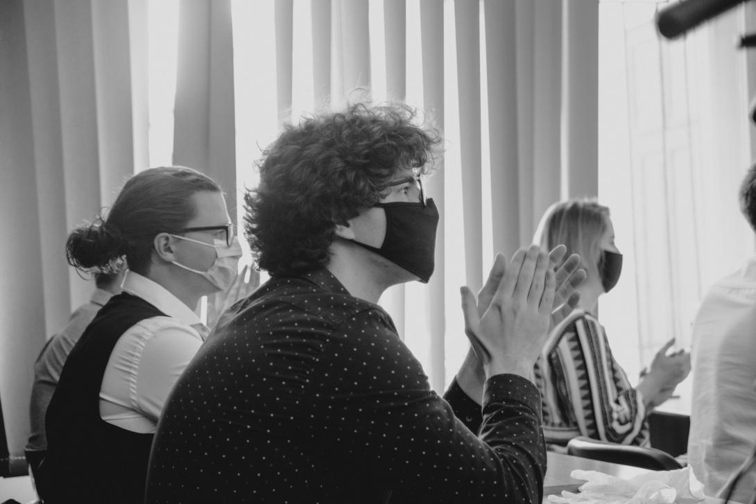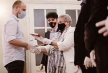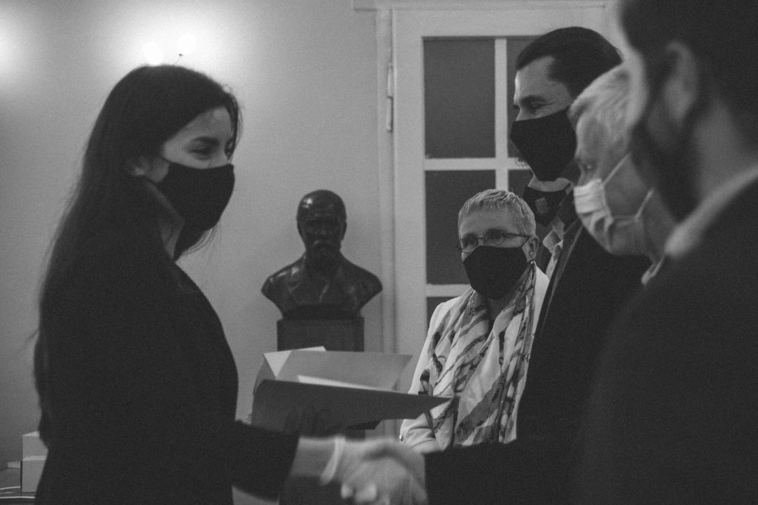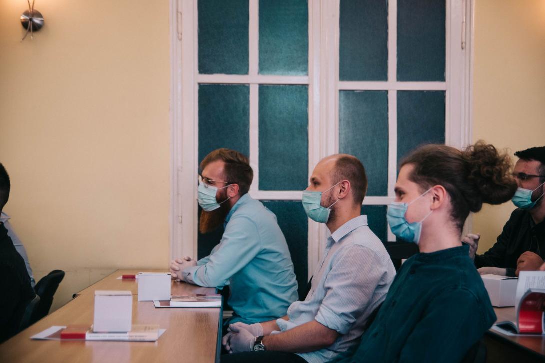 Maszkos ballagó diákok az EME előadótermében, Kolozsvárt 2021. június 1-én