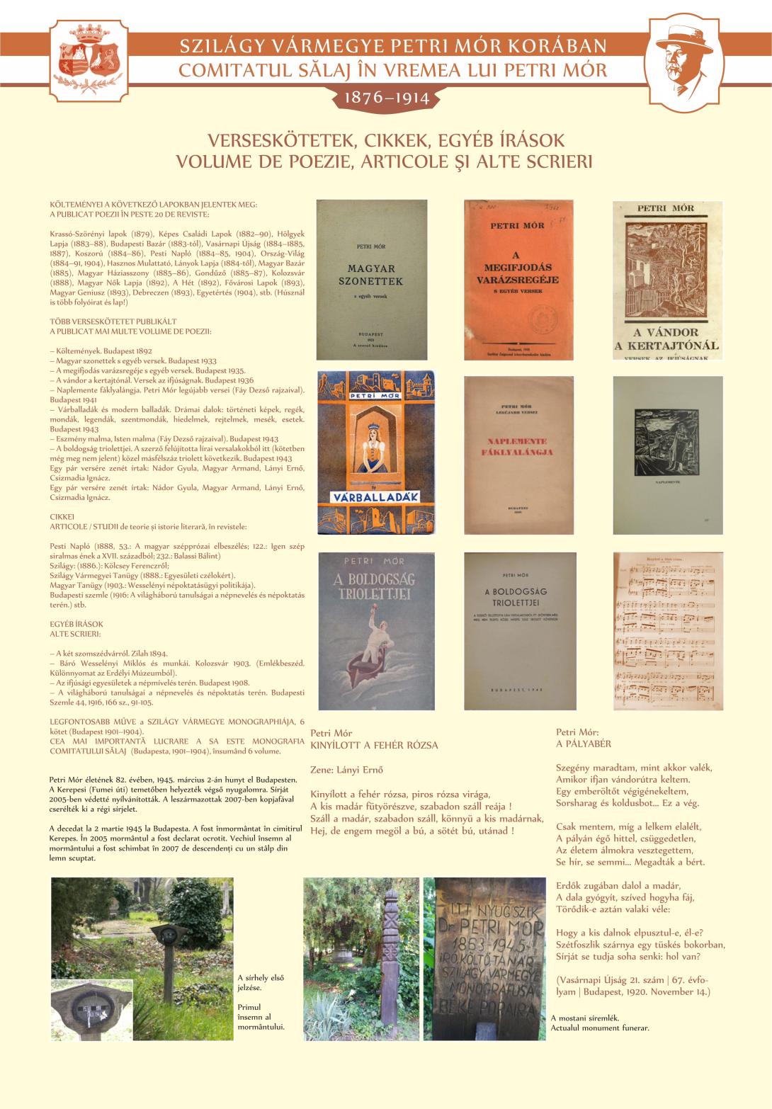 A z Erdélyi Múzeum-Egyesület Zilah és Vidéke Fiókszervezete a XVII. Szilágyság-kutatás napja keretében Petri Mór halálának 75 évfordulója alkalmából poszter-kiállítást szervez Szilágy vármegye Petri Mór korában címmel. A 35 poszter bemutatja Petri Mór életét és munkásságát, majd pedig részletesen Szilágy vármegye állapotát, fejlődését létrejöttétől, 1876-től az első világháborúig.