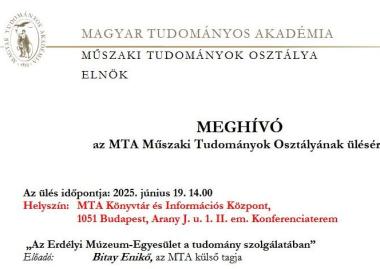 Bitay Enikő meghívott előadó az MTA Műszaki Tudományok Osztálya ülésén