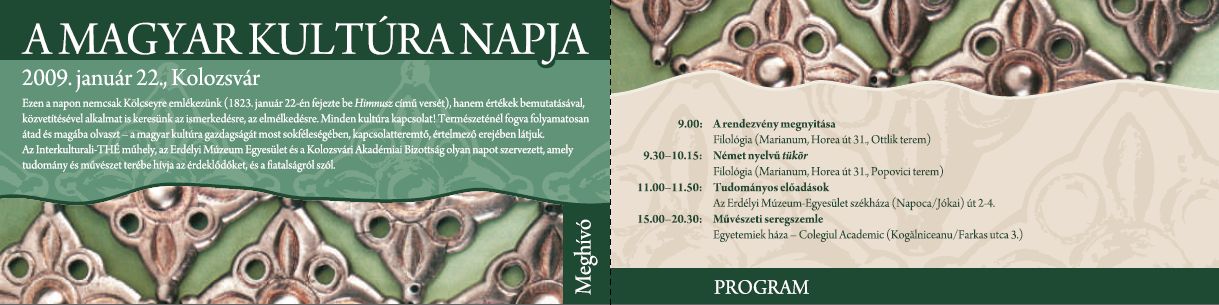 Ezen a napon nemcsak Kölcseyre emlékezünk (1823. január 22-én fejezte be Himnusz című versét), hanem értékek bemutatásával, közvetítésével alkalmat is keresünk az ismerkedésre, az elmélkedésre. Minden kultúra kapcsolat! Természeténél fogva folyamatosan átad és magába olvaszt – a magyar kultúra gazdagságát most sokféleségében, kapcsolatteremtő, értelmező erejében látjuk.
