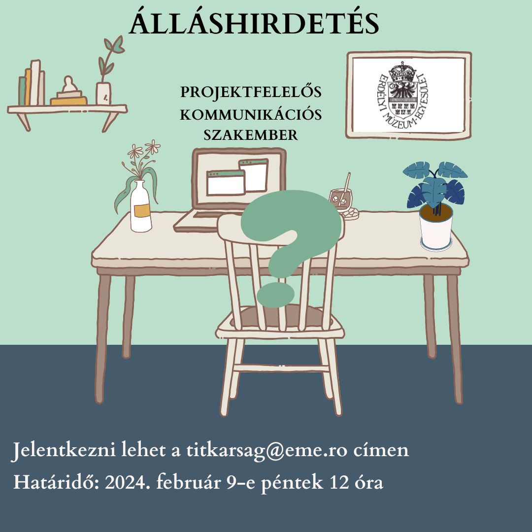 A kolozsvári székhelyű Erdélyi Múzeum-Egyesület projektfelelőst, kommunikációs szakembert alkalmaz.