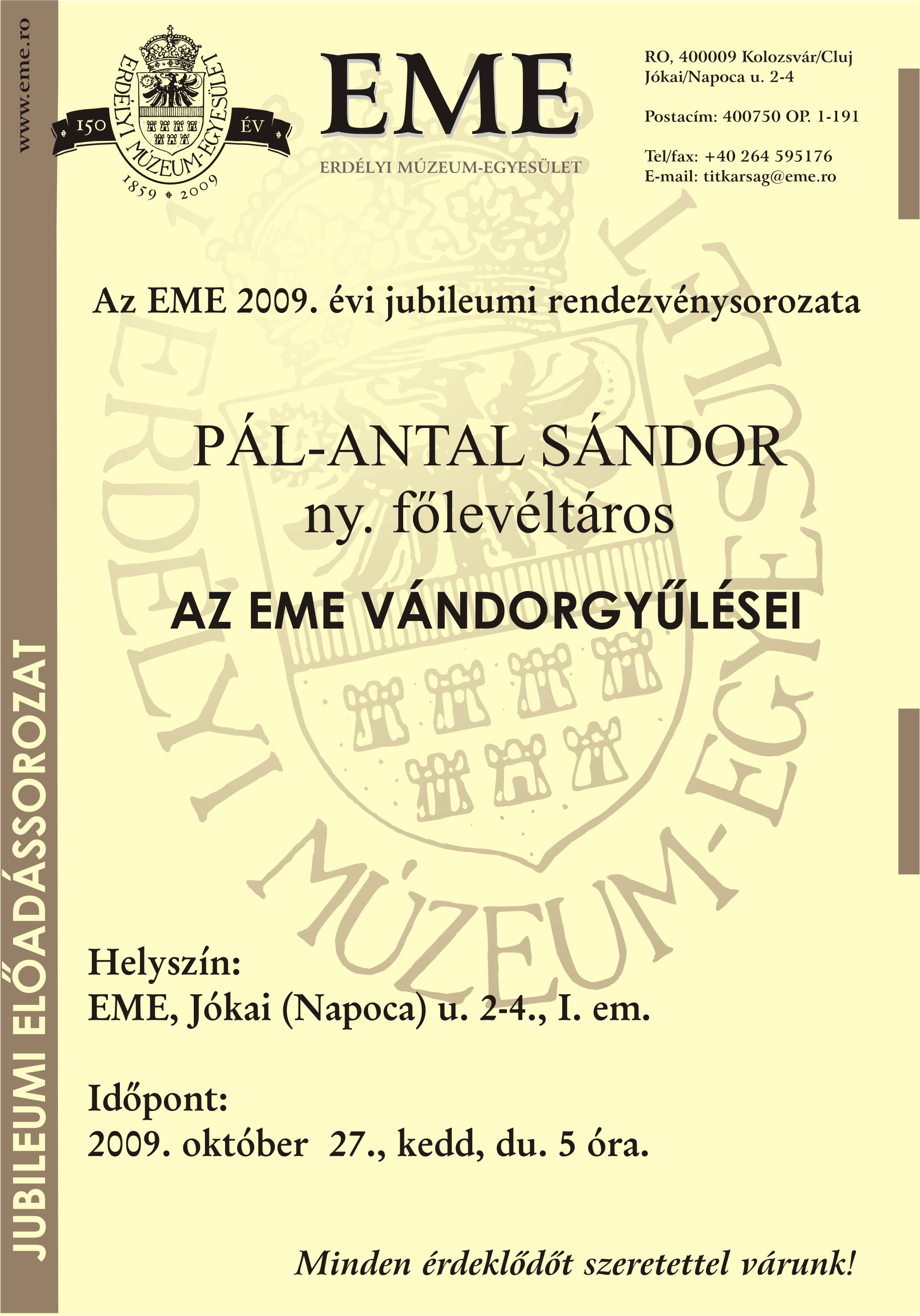 Az EME 2009. évi jubileumi rendezvénysorozatának soron következő előadását