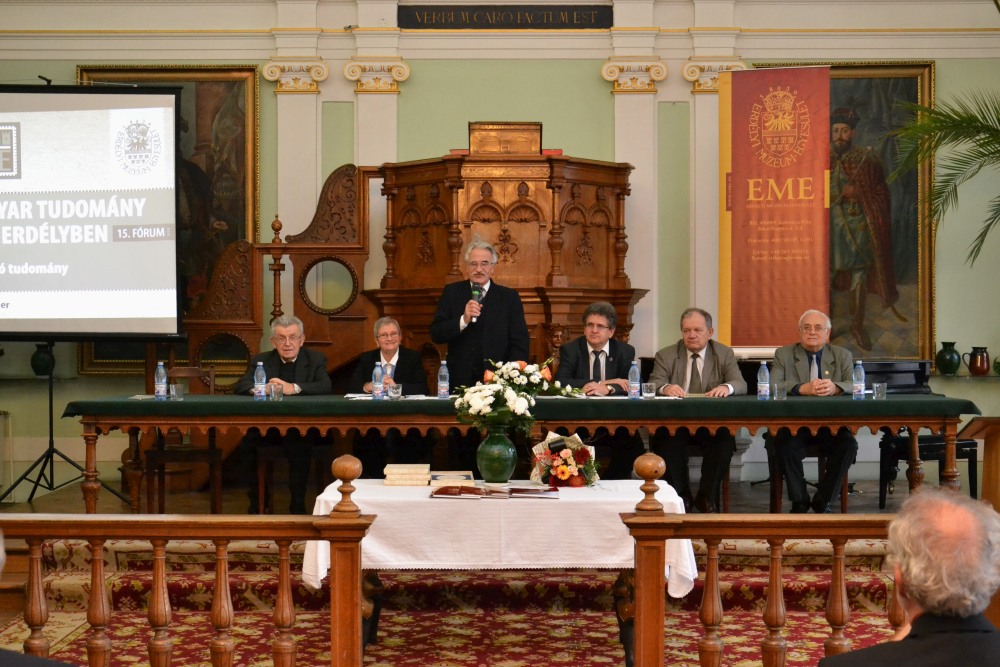 A rendezvényt Sipos Gábor, az Erdélyi Múzeum-Egyesület elnöke nyitotta meg, aki köszöntötte a meghívottakat, intézményi képviselőket, s beszédében kiemelte a rendezvénysorozat jelentőségét, ezt követően Kocsis Károly, az MTA Magyar Tudományosság Külföldön Elnöki Bizottságának elnöke köszöntötte az egybegyűlteket, s kiemelte a határon túli magyarok tudományos tevékenységének jelentőségét, folyamatos támogatásának szükségességét, összefogását, s az MTA ebben való szerepét. A köszöntések sorában következett, Kecskés Tibor konzul, aki Mile Lajos, Magyarország kolozsvári főkonzulja köszöntőjét tolmácsolta. A továbbiakban Bitay Enikő, az EME főtitkára, a fórum programfelelőse bemutatta a rendezvénysorozat tizenöt ülésszakának témáit, jelentőségét, fényképes kivetítéssel illusztrálva a már megrendezésre került tudományos üléseket. Ezt követően kezdődtek el a plenáris előadások.
