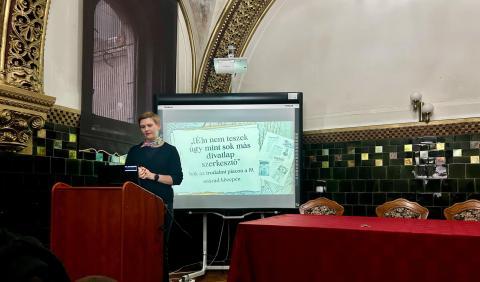 Török Zsuzsa a HUN-REN Bölcsészettudományi Kutatóközpont tudományos főmunkatársa, február 26-án ismét előadást tartott ott, ahol ő maga is tanulmányait végezte: a BBTE Bölcsészettudományi Karán. Legutóbb egy éve járt itt, amikor a periodikakutatás módszertanáról beszélt, a klasszmagyaros műhely egyik nyílt találkozóján. Már akkor is szó esett a női szerkesztőkről és ennek a területnek a kutatási lehetőségeiről, melybe most mélyebben is betekintést nyerhettek a hallgatók.