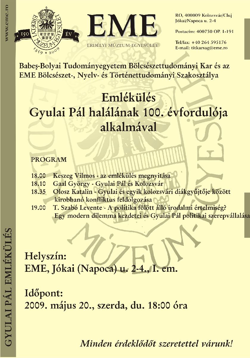 Gyulai Pál halálának 100. évfordulója alkalmával
