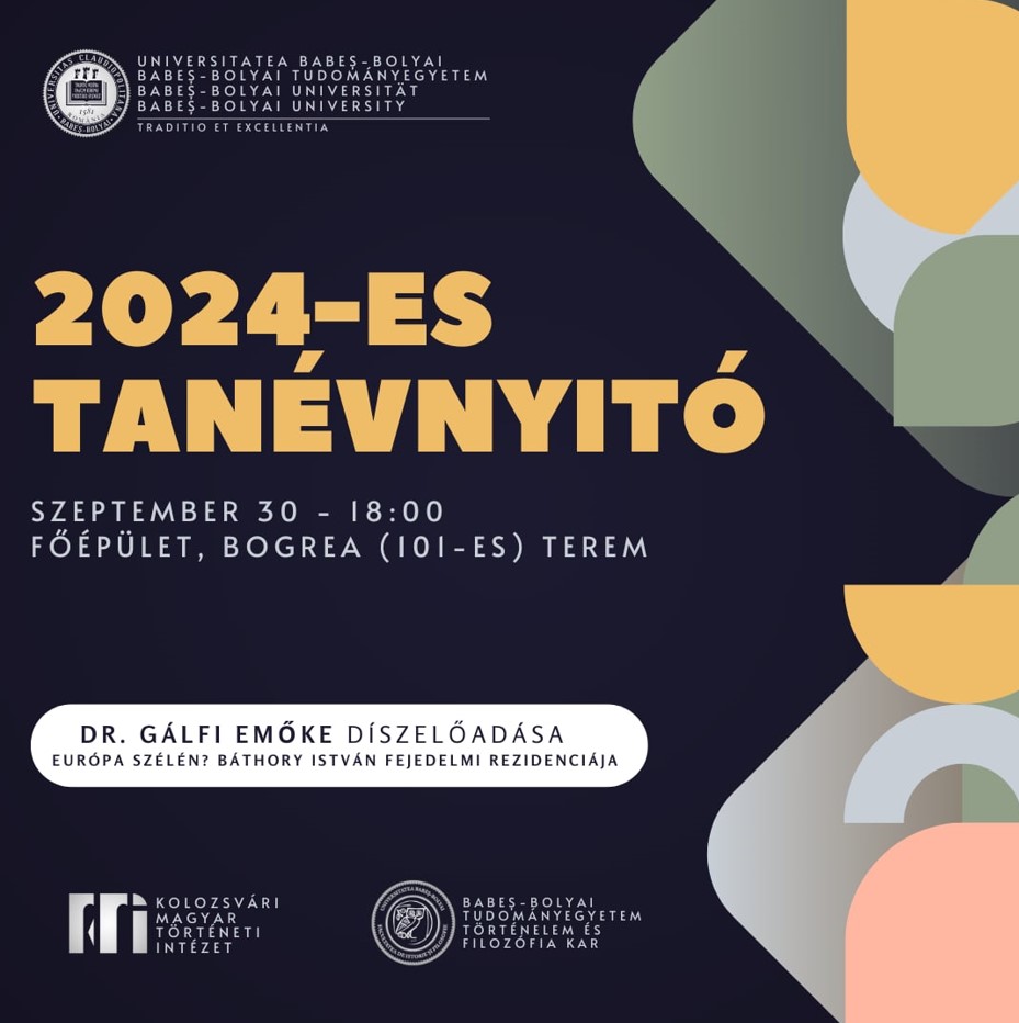 A Jakó Zsigmond Kutatóintézet munkatársa, Gálfi Emőke Európa szélén? Báthory István fejedelmi rezidenciája címmel tartott évnyitó előadást 2024. szeptember 30-án, a BBTE Történelem és Filozófia Karának tanévnyitóján.