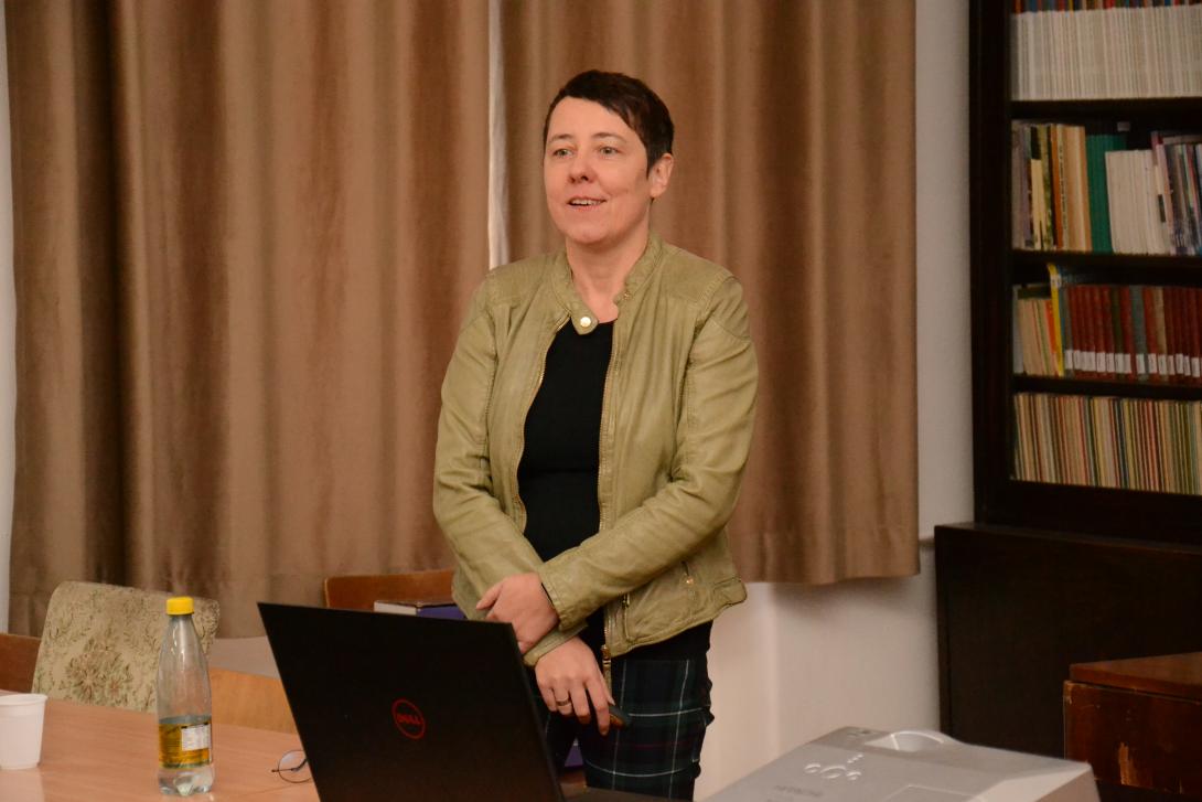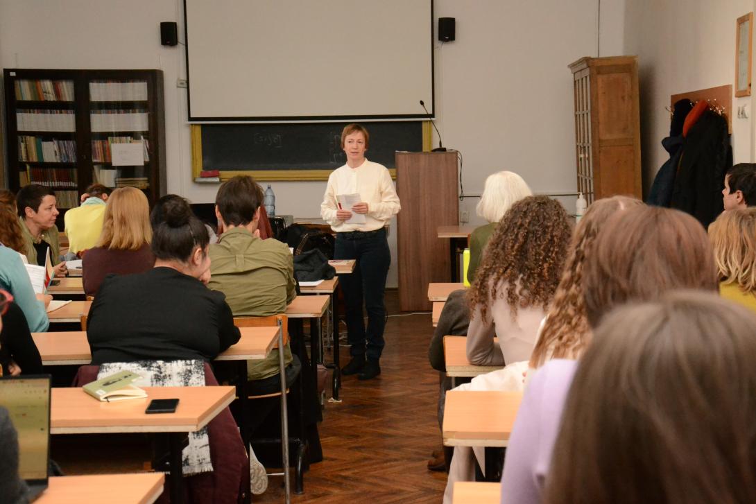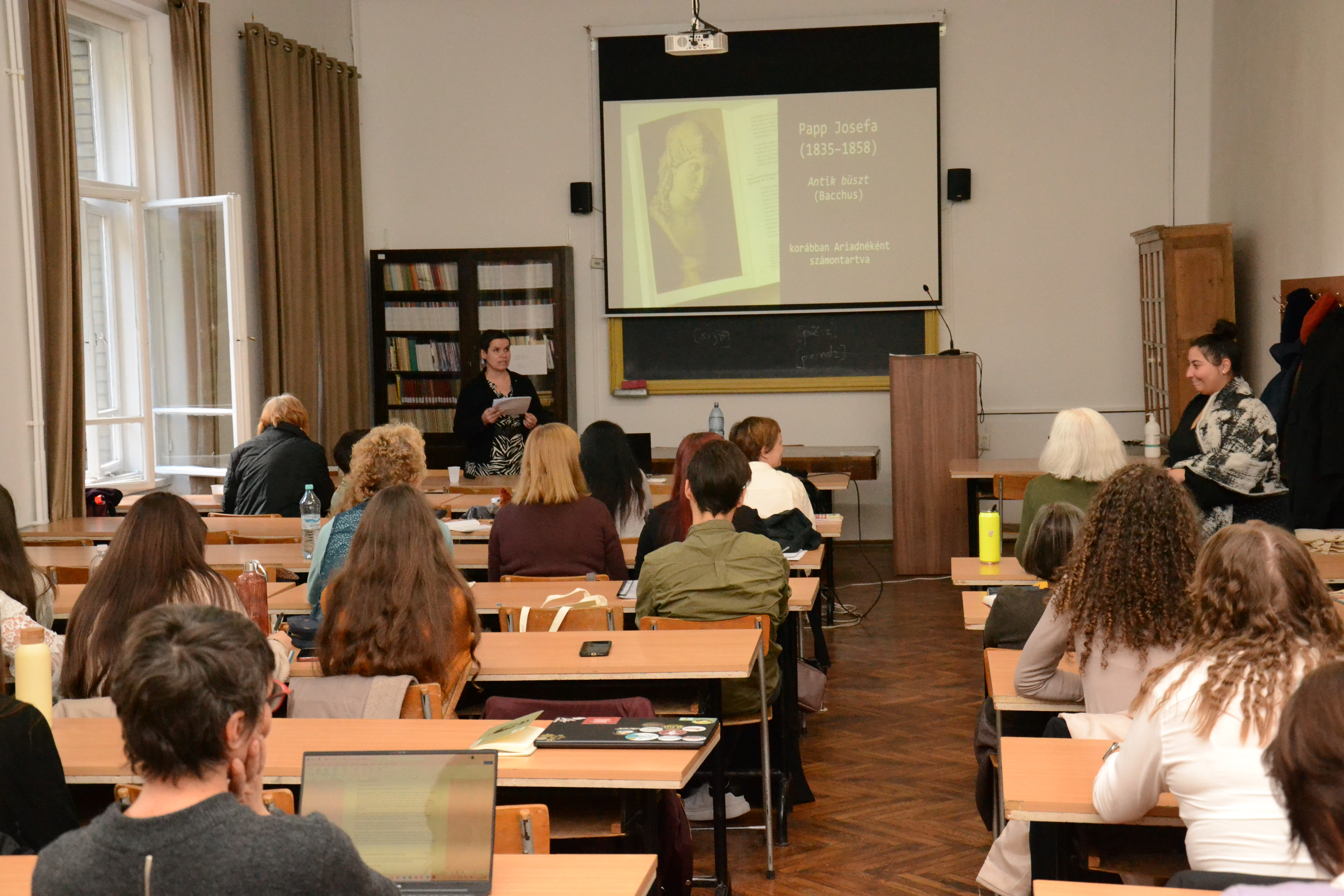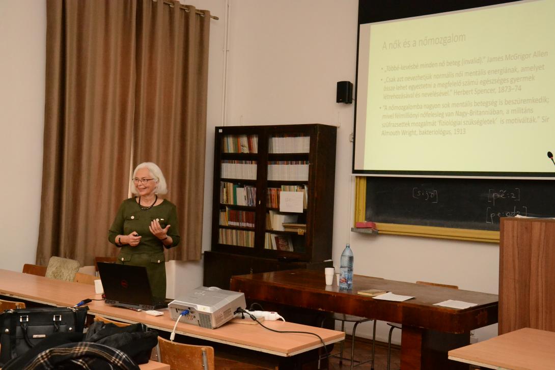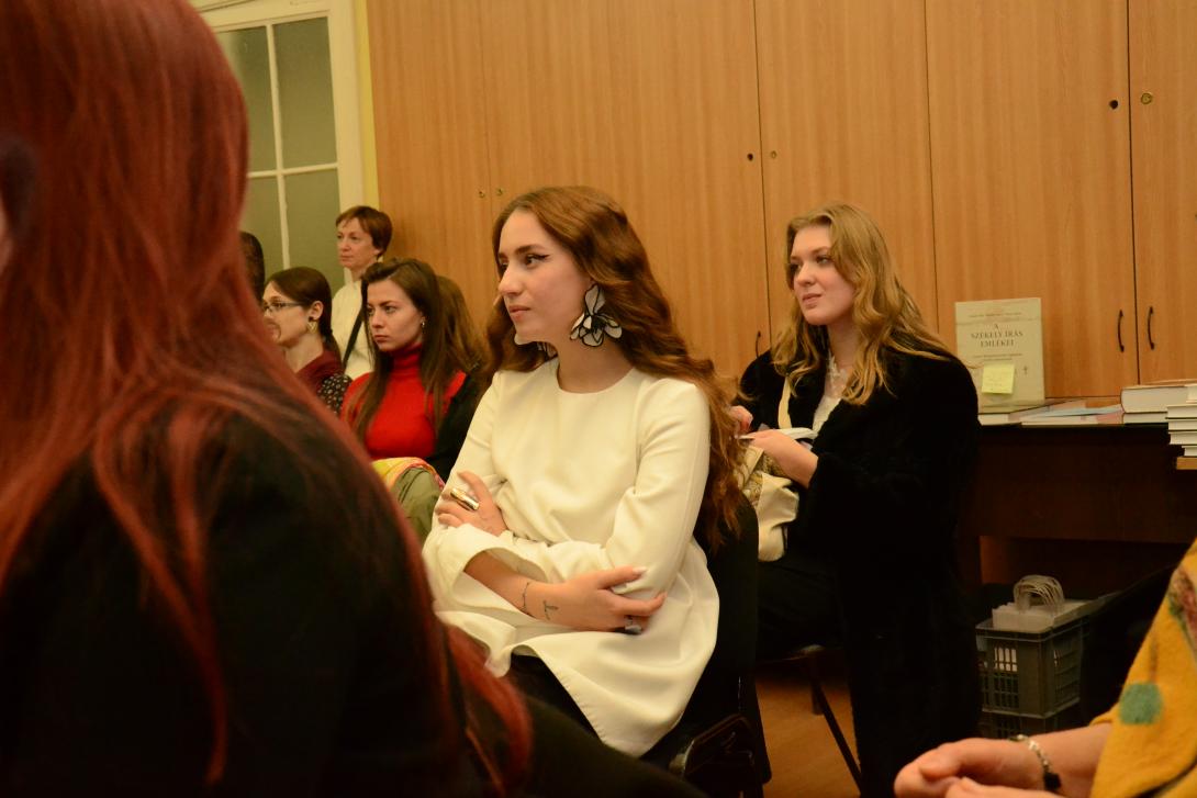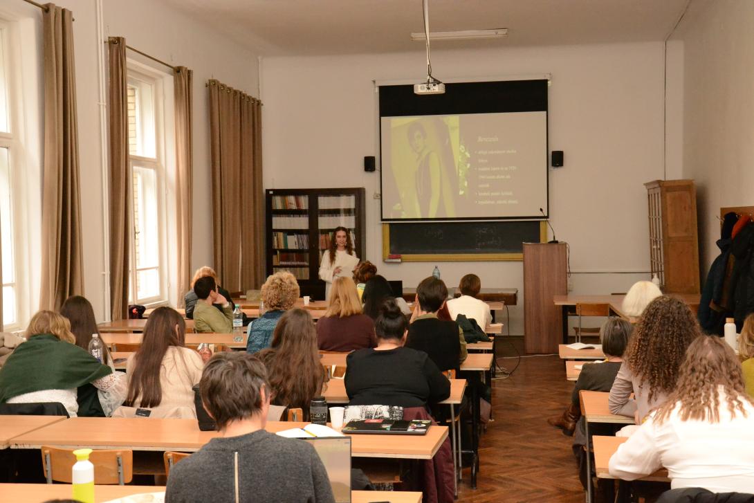 Séllei Nóra, a Debreceni Egyetem Brit Kultúra Tanszékének egyetemi tanára a Bloomsbury-kör nemzedékének bemutatásával kezdte előadását. A kör szemléletmódja behálózta az akkori londoni műveltségi életet, nézeteik szembementek a viktoriánus kor prűdségével. Virginia Woolf az egyik legfontosabb alakja volt a társaságnak – a modernista esztétikát meghatározó férfiközpontú rendszerben a női alkotó helyét kereste. Ezt követően Bódi Katalin, a Debreceni Egyetem docense, a 19. századi magyar festőnők hiányzó-hiányos történetét mutatta be. Az előadás a Kiscelli Múzeum "Ki a raktárból!" című kiállításának ismertetésével kezdődött, mely kiállításon Papp Josefa, Barabás Henriette és Kaerling Henriette művésznők munkáit is láthatta a közönség. Hiányos történetük azzal magyarázható, hogy önálló munkásságuk nem volt támogatott, lehetőségeik korlátozottak voltak, így műveik nem váltak széles körben ismertté. Berki Tímea a BBTE Magyar Irodalomtudományi Intézetének társult oktatója a nőnevelés és a rajzoktatás 19. század végi gyakorlatát Marlin Molly életútja bemutatásán keresztül ragadta meg. Molly tanulmányai befejezése után, lányiskolában lett tanító és közben képzőművészeti pályája is kibontakozott. Pieldner Judit a Sapientia EMTE egyetemi docense Céline Sciamma "Portré a lángoló fiatal lányról" című filmjét elemezte. A film hangsúlyt fektet a női nézőpontra, illetve a kép és a tekintet viszonyára. Az irodalom, zene és festészet kavalkádjában új esztétikai terek teremtődnek, amelyek a női tapasztalatot helyezik előtérbe.
