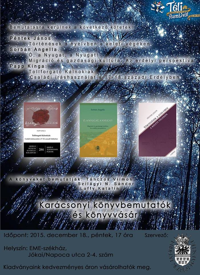 Helyszín és időpont: EME székház, Jókai/Napoca utca 2-4, 2015. december 18., péntek, 17 óra