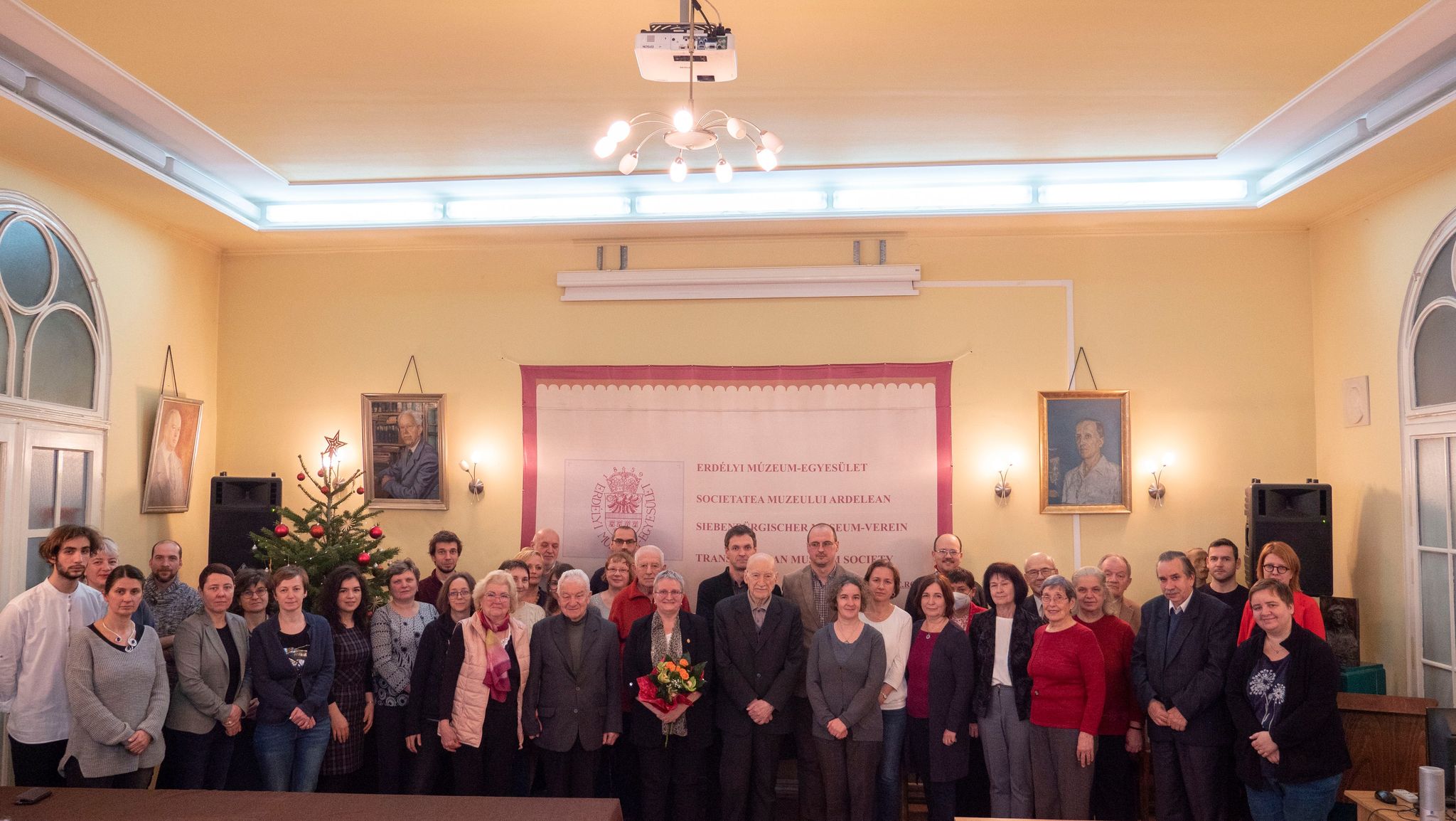 A hagyományos év végi ünnepi koccintásra múlt pénteken, december 16-án gyűltek össze az EME vezetőségi, választmányi tagjai és munkatársai. Az eseményen Bitay Enikő elnök összegezte az elmúlt év eseményeit, és köszönetet mondott a kollégáknak az eredményes kutatómunkáért, a rendezvények szervezéséért és lebonyolításáért. Kiemelte a szakosztályok és fiókegyesületek tevékenységét, a külső kutatási projekteket, amelyekben az egyes szakosztályok felkarolják a fiatal doktoranduszokat, kutatókat, és bevezetik őket a különféle interdiszciplináris kutatásokba, melyeknek az EME fontos közege. Kiemelten fontos volt a 2022-es év az EME hagyatékainak feldolgozása és a digitalizálás szempontjából is. Bitay Enikő köszönetet mondott az EME támogatóinak és az eseményen jelen lévő Renner Zsuzsannának is, aki aznap adta át az EME-nek Renner János, a kolozsvári bőr- és cipőgyár alapítójának bronz mellszobrát. Az eseményen felköszöntötték Farkas Zoltánt, az agrártudományi szakosztály egykori alapító tagját 85. születésnapja alkalmából. Ugyanakkor Kodály Zoltán 140. születésnapjáról is megemlékeztek. Ez alkalomból Szenkovics Dávid csellóművész szólaltatta meg Kodály: Szólószonáta op. 8. 1. tételét. Remek csellójátékával emlékezetessé tette az Erdélyi Múzeum-Egyesület évzáró ünnepét, s egyúttal Kodály Zoltánról is méltó módon megemlékezhettek születésének 140. évfordulója alkalmából.