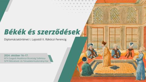 A Szegedi Tudományegyetem Középkori és Kora Újkori Magyar Történeti Tanszéke és az ott működő HUN-REN–SZTE Oszmán Kori Kutatócsoport szervezésében Békék és szerződések – Diplomáciatörténet I. Lajostól II. Rákóczi Ferencig címmel rendeztek konferenciát 2024. október 16-17-én.