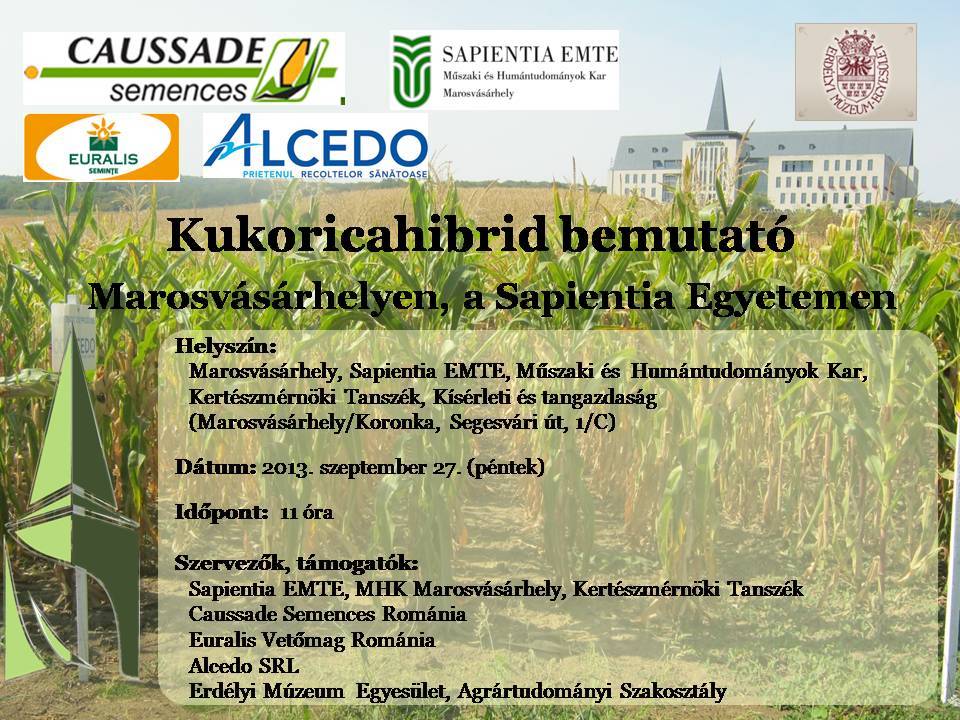 Kukoricahibrid bemutatót szervez 2013. szeptember 27-én, pénteken 11 órától Marosvásárhelyen a Sapientia Egyetemen.