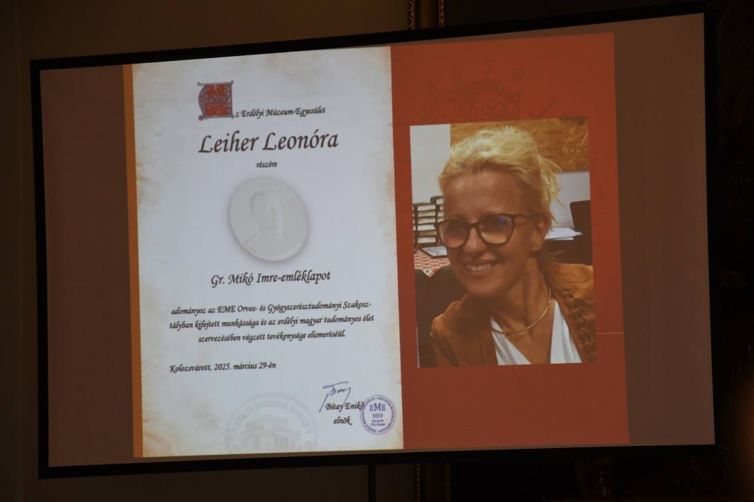 A díjazottat Sipos Emese, az EME  Orvos- és Gyógyszerésztudományi Szakosztályának titkára laudálta.