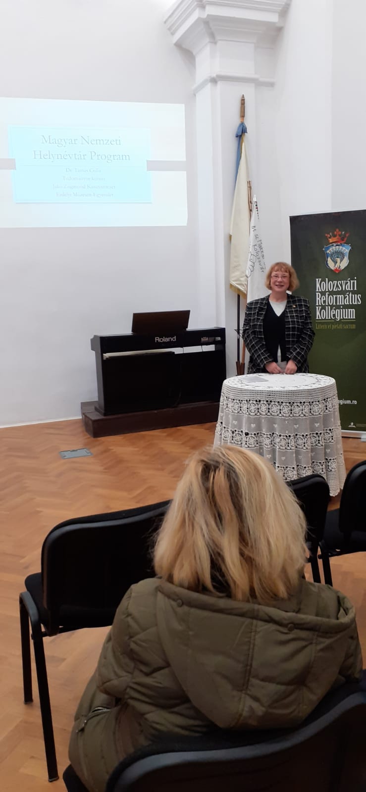 Tamásné Szabó Csilla, kutatóintézetünk nyelvész munkatársa, a Magyar Nemzeti Helynévtár Program erdélyi térségi koordinátora előadást tartott április 1-én a kolozsvári Református Kollégiumban a régió magyartanárainak, melyben ismertette a program célkitűzéseit, és résztvevőket keresett az elvégzendő nagy mennyiségű munkához.