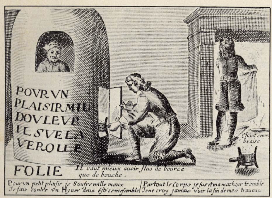 „Egy gyönyörért ezer fájdalom”. Rézmetszet. (Lagniet, Jacques: Receuil des plus illustres proverbs. Párizs, 1659‒1663).