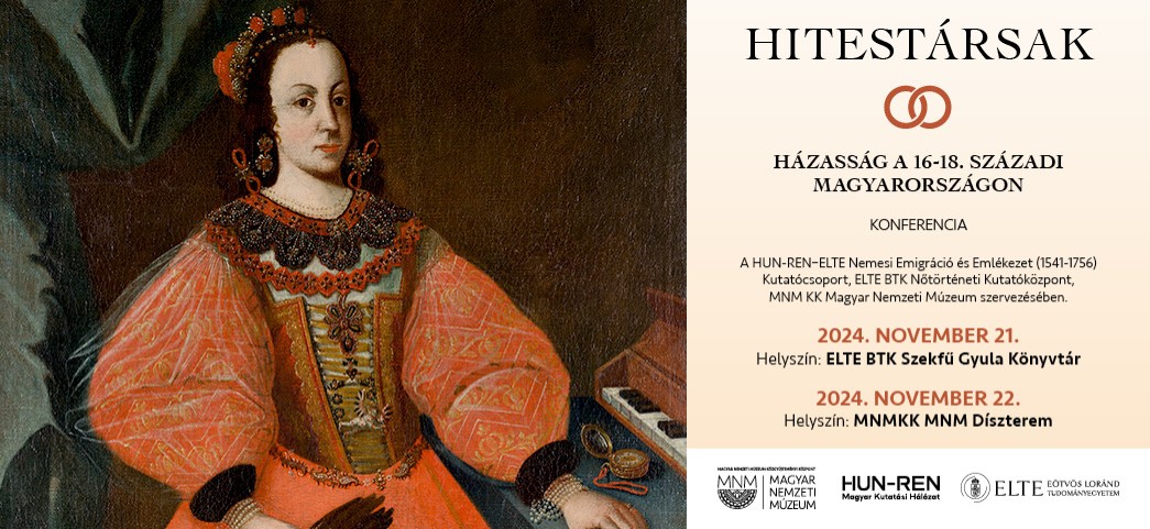 2024 november 21–22-én az Eötvös Loránd Tudományegyetem Nőtörténeti Kutatóközpontja, a HUN-REN–ELTE Nemesi Emigráció és Emlékezet (1541–1756) Kutatócsoportja és a Magyar Nemzeti Múzeum Közgyűjteményi Központ szervezésében tartották Budapesten a Hitestársak. Házasság a 16–18. századi Magyarországon konferenciát, ahol intézetünk munkatársa, Papp Kinga Wesselényi Kata házassága és özvegysége kéziratos imanaplói tükrében címmel tartott előadást. A konferencia programját itt lehet megtekinteni.