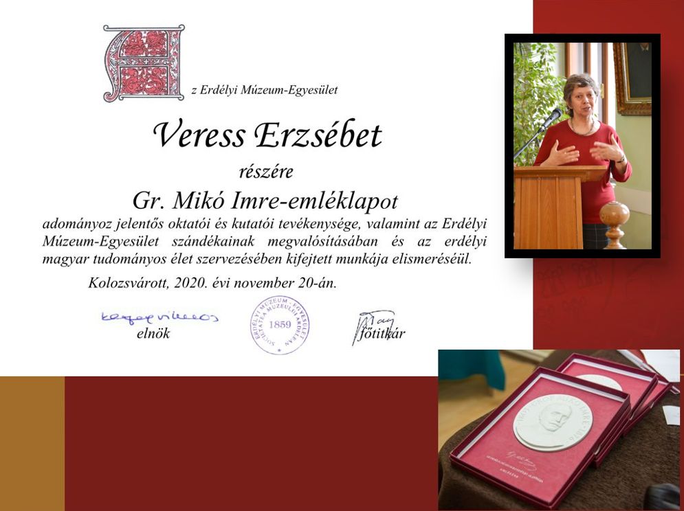 Veress Erzsébet életének 71. évében (2020. november 10-én hunyt el Kolozsvárt), a múlt héten hunyt el, sajnos a kitüntetést már nem veheti át. Fényképe kivetítésével tiszteletünket fejezzük ki. A nyílhegyek, a vassalakok, a kerámiatöredékek, a csillogó üvegek birodalmában folytatjuk a kutatásokat a kutató kollégákkal, volt tanítványaival együtt. Az ő emléke is erősíteni fog a munkában, szellemisége tovább él a közösen elkezdett, és folytatott kutatásokban.