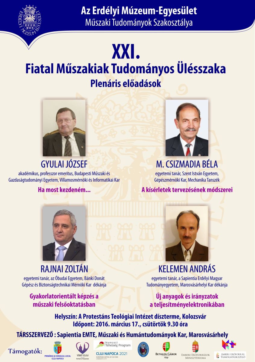 Az Erdélyi Múzeum-Egyesület Műszaki Tudományok Szakosztálya nevében tisztelettel meghívjuk Önt a Fiatal Műszakiak Tudományos Ülésszakának megnyitójára és előadásaira, Kolozsvárra.