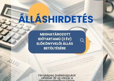 ÁLLÁSHIRDETÉS meghatározott időtartamú (2 év) előkönyvelői állás betöltésére