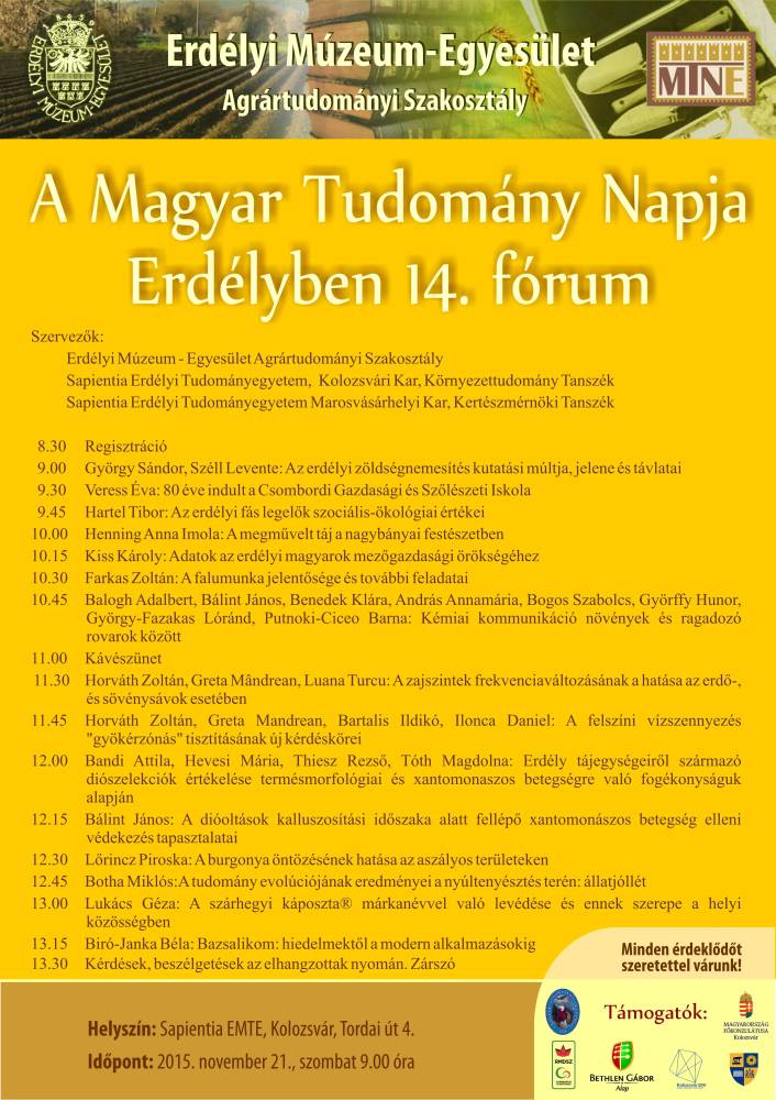 Erdélyi Múzeum-Egyesület Agrártudományi SzakosztálySapientia EMTE Kolozsvári Kar, Környezettudomány TanszékSapientia EMTE Marosvásárhelyi Kar, Kertészmérnöki Tanszék
