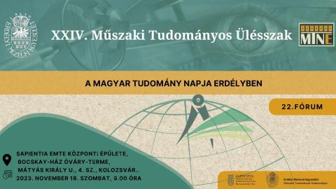 Az Erdélyi Múzeum-Egyesület Műszaki Tudományok Szakosztálya és a Sapientia Erdélyi Magyar Tudományegyetem Marosvásárhelyi Kara, az idén ismét a Magyar Tudomány Napja Erdélyben rendezvénysorozat keretében tartotta meg a műszaki tudományosságot életre hívó fórumát: a XXIV. Műszaki Tudományos Ülésszakot, amelyre 2023. november 18-án került sor.