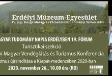 8. A Turisztikai szekció keretében tartották meg november 26-án a VII. erdélyi magyar vendéglátás és turizmus konferenciát a Babeș–Bolyai Tudományegyetem partnerségében, melynek témája A turizmus újraindítása a Kárpát-medencében 2020-ban. Az online formában megtartott rendezvény keretet biztosított a hazai és anyaországi szakemberek találkozójára, tapasztalatcseréjére, ízelítőt próbálva adni ezen szakterület kutatási eredményeiről, oktatási tapasztalatairól.
